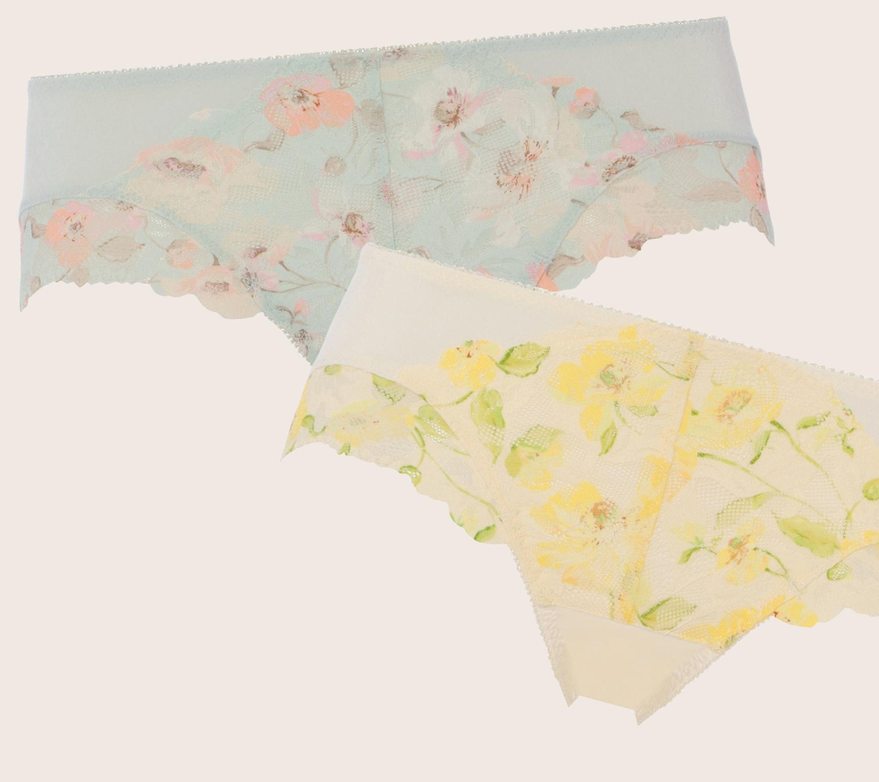 2重構造のパワーネットがヒップを引き上げ、ラインを整える。アネモネにインスパイアされたというカラフルで華やかなデザインに気分も上々。各¥2,860(アモスタイル バイ トリンプ/トリンプお客様相談室 TEL:0120・104・256)