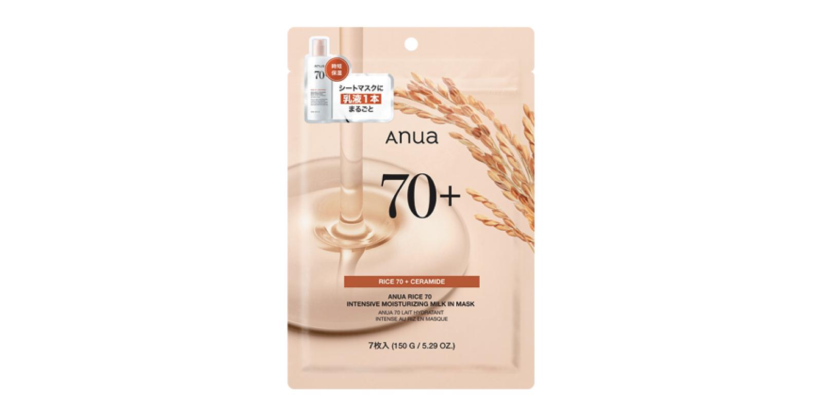 ライス70発酵保湿マスク ※ ANUA RICE WATER+™:コメヌカ水、コメエキス(全て整肌成分)