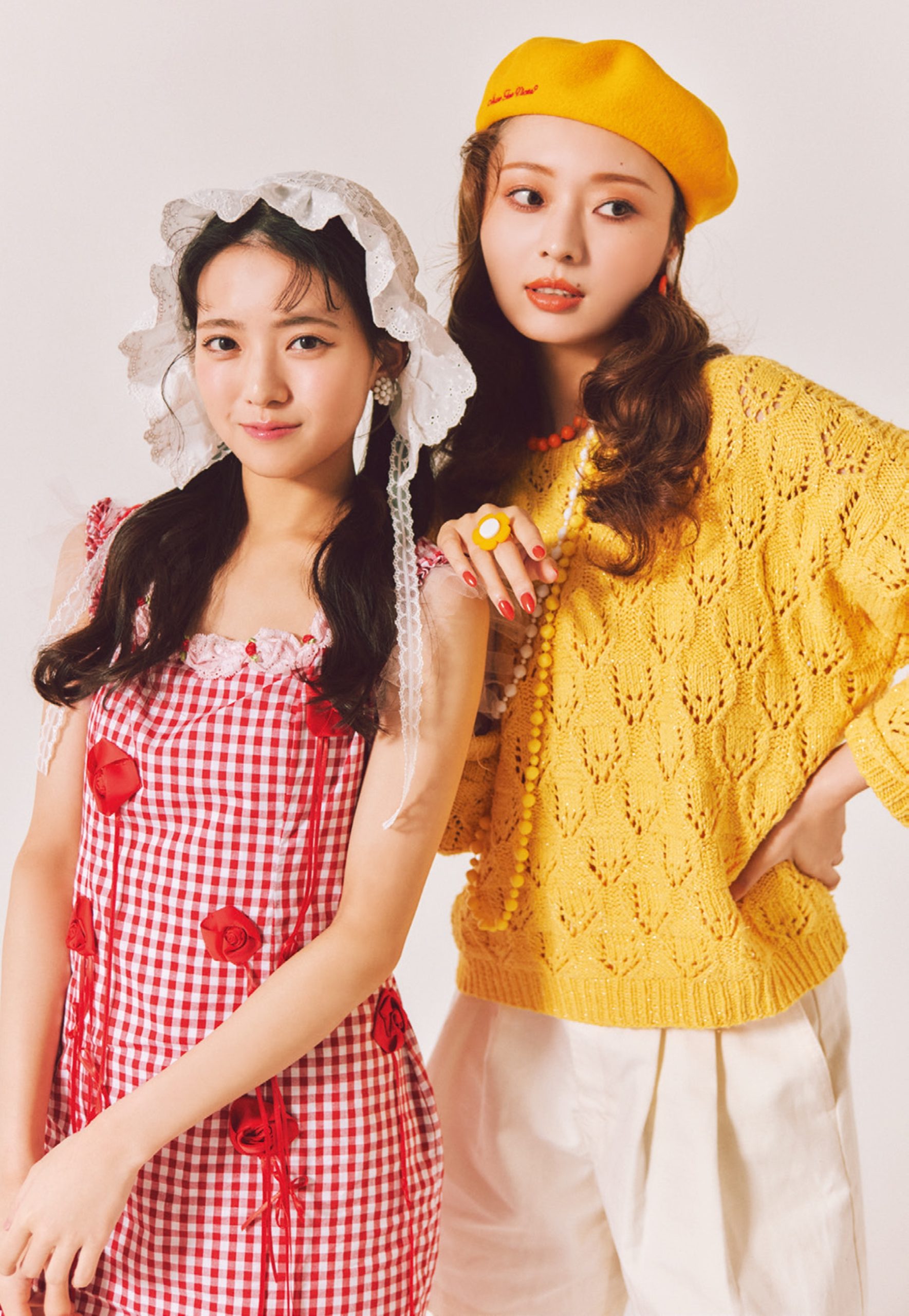 梅澤 私は心月ちゃんがソログラビアで出てたananを見て、ファッションでがらっと雰囲気が変わる素敵な子だなって思ってたから一緒に撮影できてうれしいよ。今日のヘッドアクセも似合う! こんな甘いファッションの心月ちゃんって、なかなかないでしょ。
