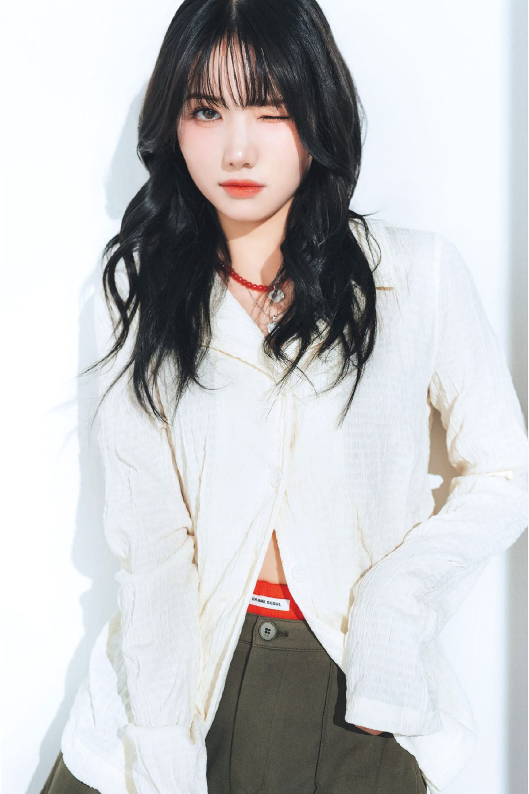 シャツ ¥11,835(ミロウーマン/ハナ ショールーム hana.showroom@hana-korea.com) マイクロショーツ ¥5,561(クランク/ハナ ショールーム) パンツ ¥32,230(エトス) ジェムストーンネックレス ¥6,820 ダズリングスカイリング ¥4,510(共にエヌフフ) ネックレス ¥9,130 リング ¥14,520(共にミュゼアール) ブレスレット ¥27,280(ポートレートリポート)(以上ハナ コリア support@hana-korea.com)