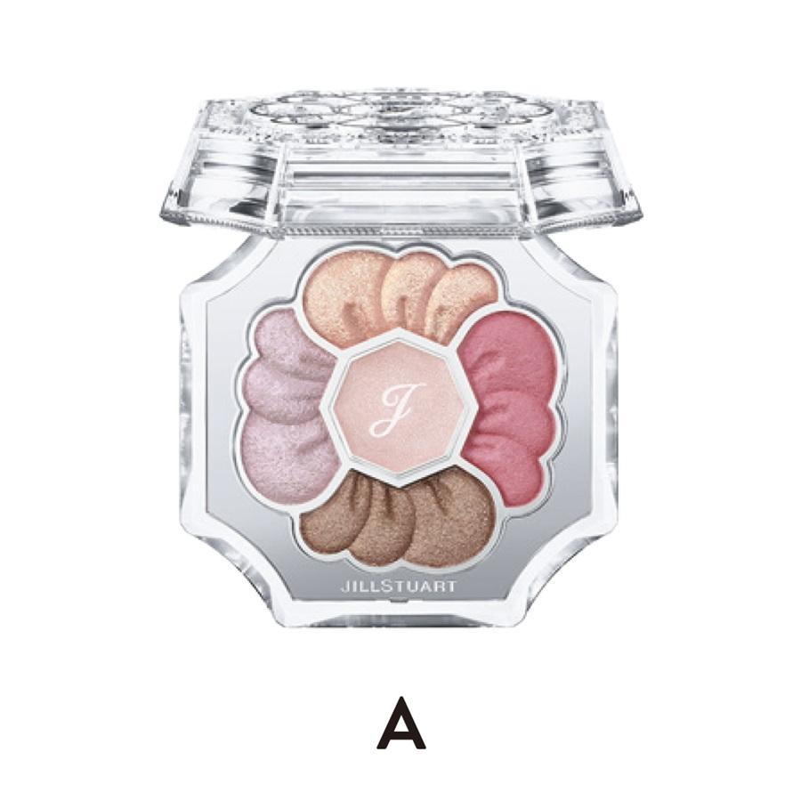 A. 高貴なバラを思わせる、深みのあるローズ・ブラウン系パレット。レイヤードすることで立体感や華やぎをプラス。ジルスチュアート ドレスドブルームアイズ 04 ¥6,600(ジルスチュアート ビューティ TEL. 0120-878-652)