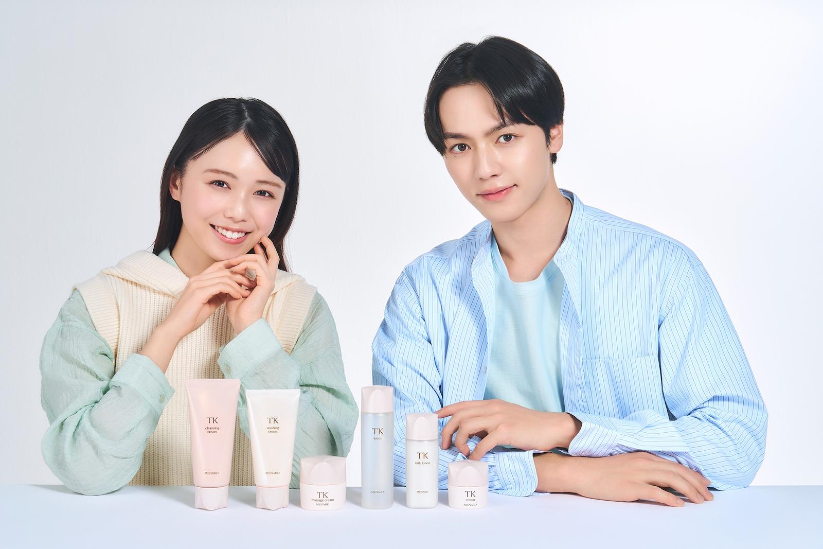 美しいと感じる肌印象の決め⼿ともなる「キメ」。このたびリニューアルされたメナードのTKシリーズはまさに、肌のうるおいを保ち、キメの整ったなめらかな肌に導く6品です。今回、男女混合9人組総合エンタテインメントグループ・ONE LOVE ONE HEART(ラブワン)メンバーの藤咲碧⽻さんと相原⼀⼼さんにTKシリーズを試してもらい、感想を聞きました!