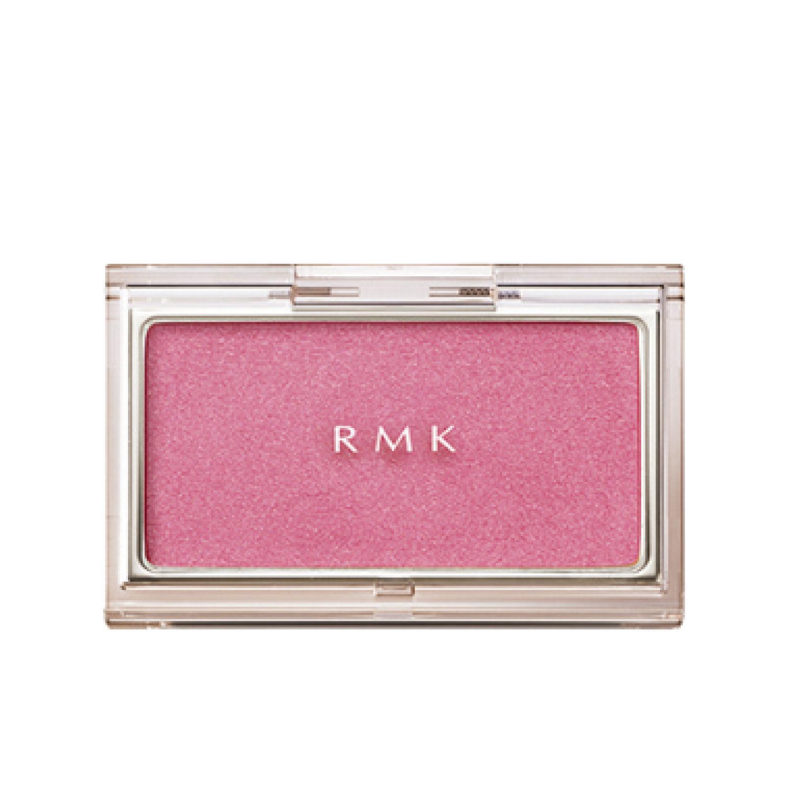 チークはデイジークのブレンディング ムードチーク。頰の⾼めの位置に淡いピンクをしっかりつけて、いちばん濃いピンクを涙袋と⿐とあごにのせるのがお決まりです。