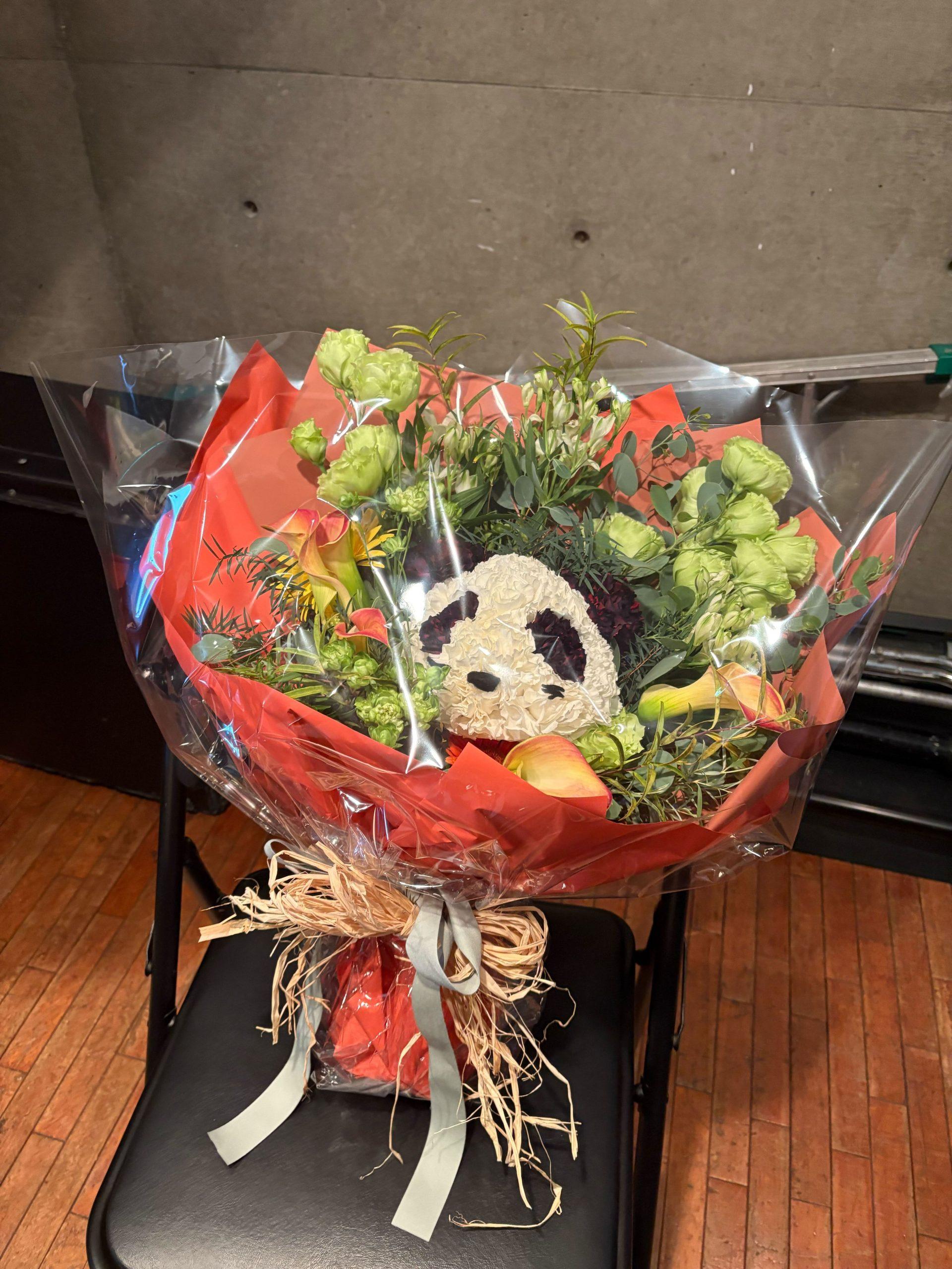 木村さんにお渡しした、ananパンダの花束。どの角度から撮っても綺麗に顔が見えるように、お花屋さんに試行錯誤を重ねてもらいました。