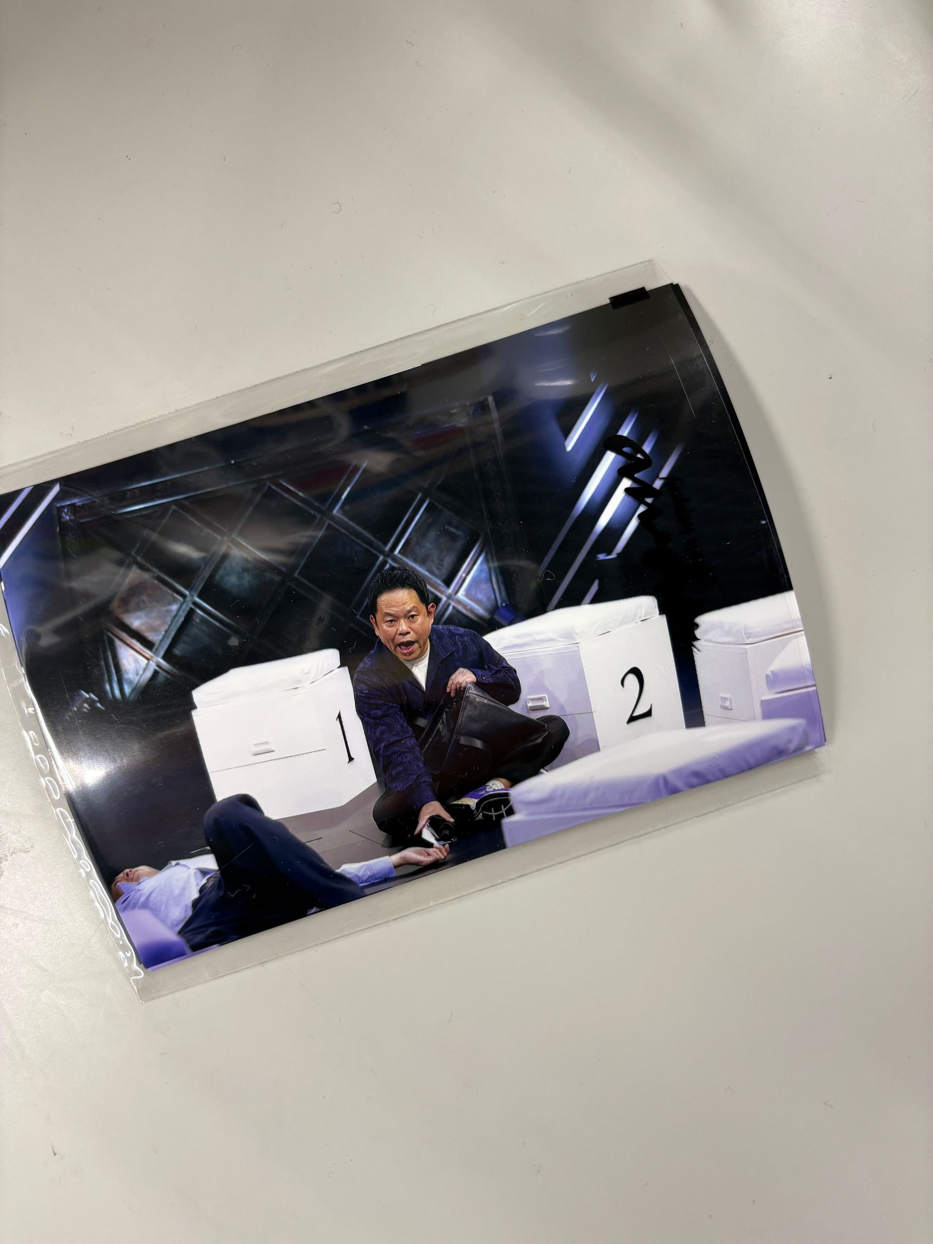 撮影の小道具として使用した津田さんの写真。「名探偵津田」第4話につながる「電気イスゲーム」のロケに、この写真を撮るために密着を行いました。詳しくは本誌で!