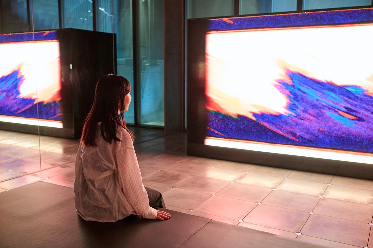 立つ場所によって、音の響き方の違いが感じられる。とにかく大迫力で、映像と音楽を全身で浴びるような体験でした。一角にはベンチがあり、座ると音楽と連動した振動が感じられるんです。まるでライブ会場にいるような感覚に!(A山)
