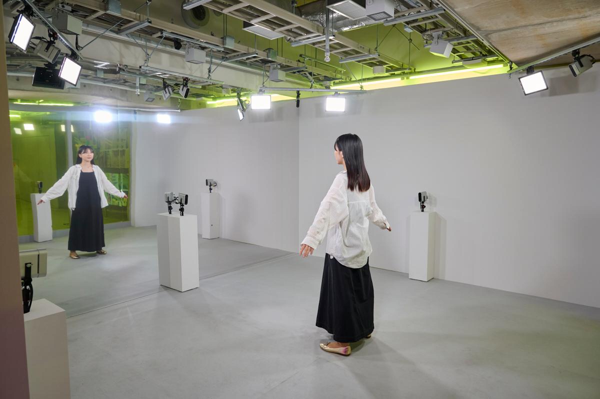ここでは自分のデジタルキャラが、『DRIP』に合わせて踊り出す動画をつくれるというから興味津々。つくり方は簡単で、カメラが複数台置かれた小部屋に入って、両手、両足を少し開いて20秒ほど静止すればOK。その後、QRコードがプリントされた紙を手渡され、15分ほど経ってからスマホでQRコードを読み取ると…。