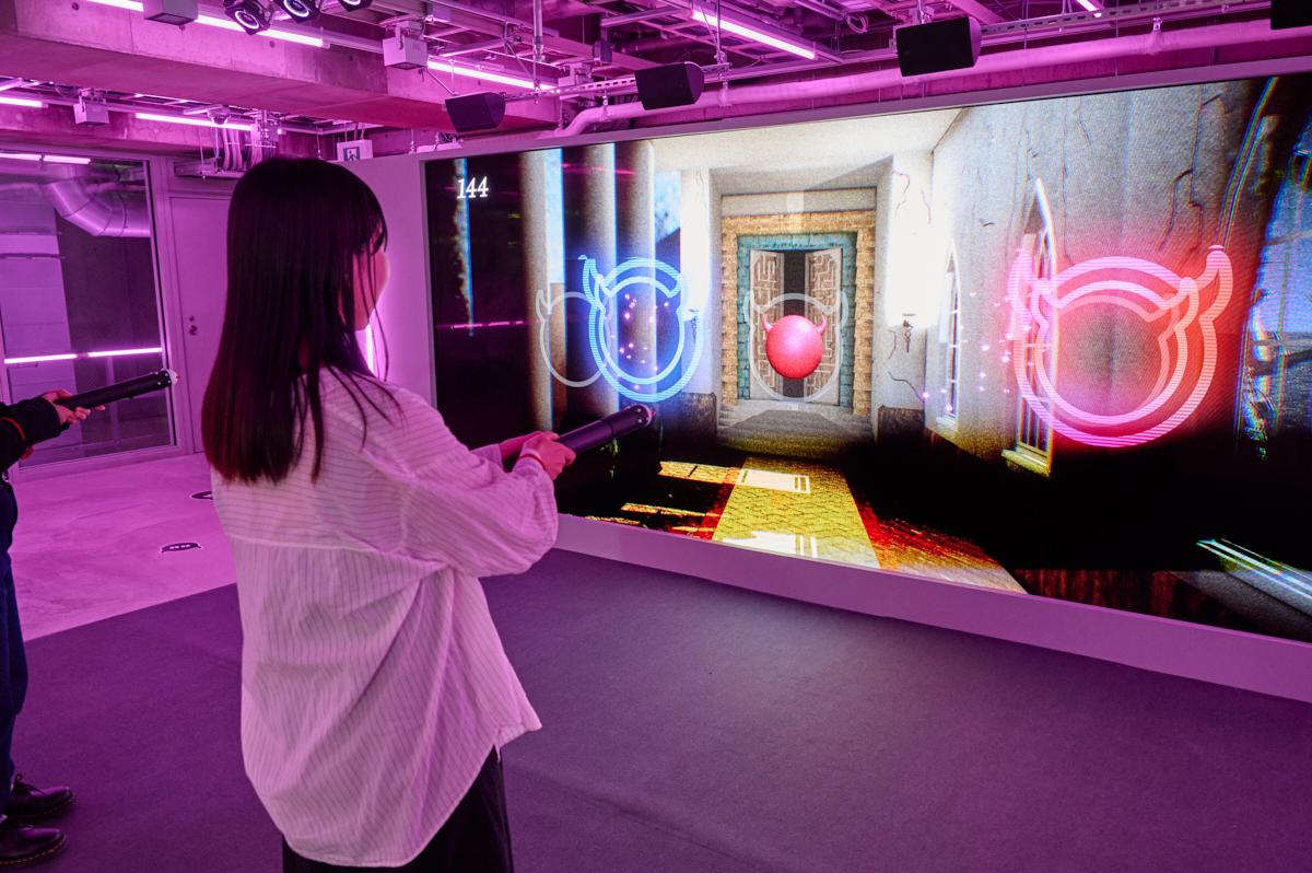 ここで体験できるのは、ソニーが開発中の触覚提示技術を採用した「ハプティックコントローラー」を使ってBABYMONSTERのシンボルマークをハンティングするというミュージックゲーム。