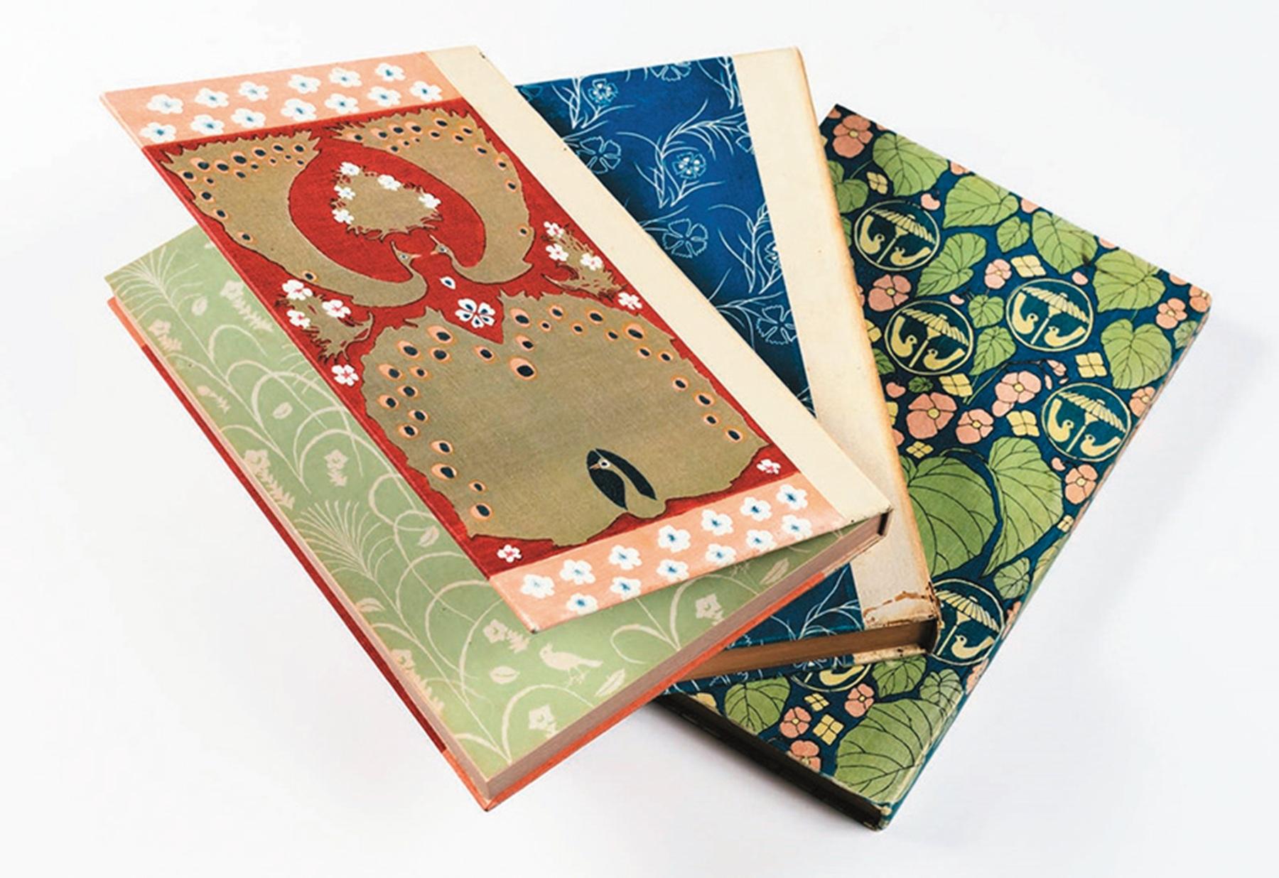 五葉は明治14年、鹿児島に生まれ、少年時代に日本画を学んだのち上京し、東京美術学校で西洋画を学んだ。在学中に兄を介して漱石と知り合ったことで雑誌『ホトトギス』の挿絵を描くことに。その後、漱石の『吾輩ハ猫デアル』の装幀を手がけ、装幀作家としてのキャリアをスタートさせる。この本を世に出すにあたり「何より美しい本を世に出したい」という漱石の願いに応え五葉は柄のデザインだけでなく、鉄線の模様を浮かせたり、素材にスエードを使ったりと、これまでになかった装幀を次々と生み出した。その後は漱石以外にも、翻訳文学や永井荷風、谷崎潤一郎、泉鏡花の著作の装幀を手がけ装幀家として広く知られていった。