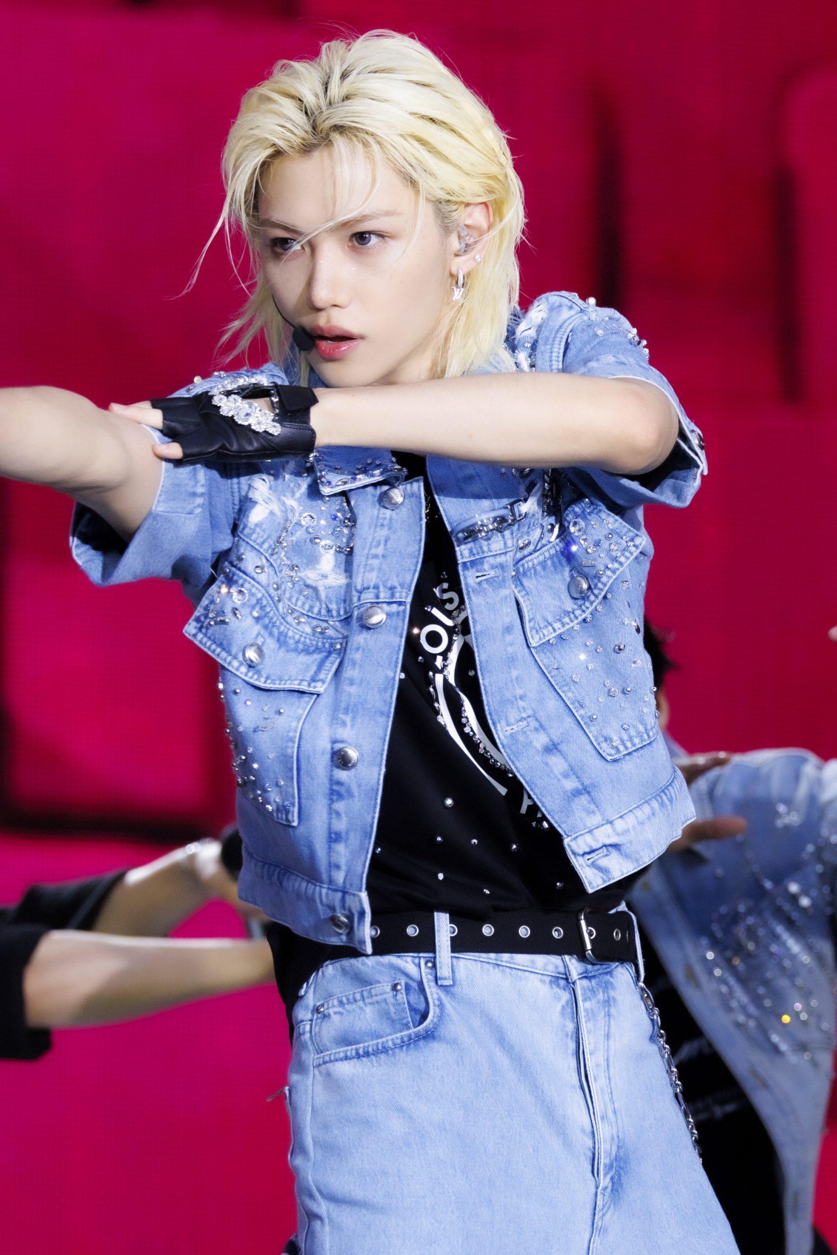 ここからはユニットステージへ。これらのユニット曲はStray Kidsのデビュー7周年を記念してリリースされたデジタルシングル『Mixtape : dominATE』に収録されているもので、HANとFelixが披露したのは「Truman」。淡いブラックデニムに同じくパールをあしらったジャケットと同色のデニムパンツのHAN、パールをあしらった淡いデニムのロングッジャケットと同色のデニムパンツのFelixというリンクコーデの2人は、その声色もラップスタイルも対照的。低音で重いラップのFelixと中高音で速射砲ラップを放つHANのコントラストが魅力のステージだった。
