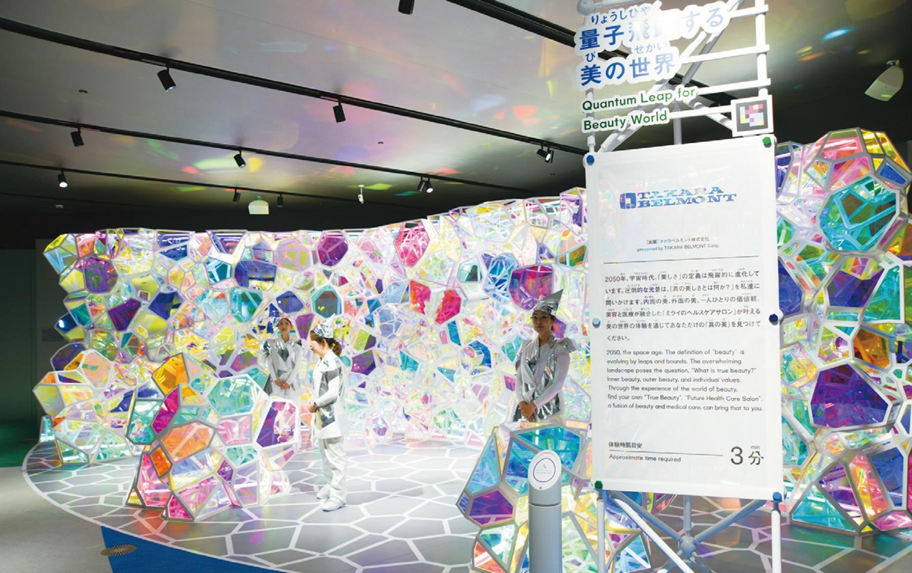 美と健康の創造企業「タカラベルモント」の煌びやかなブースでは「真の美しさとは何か?」を問いかける。