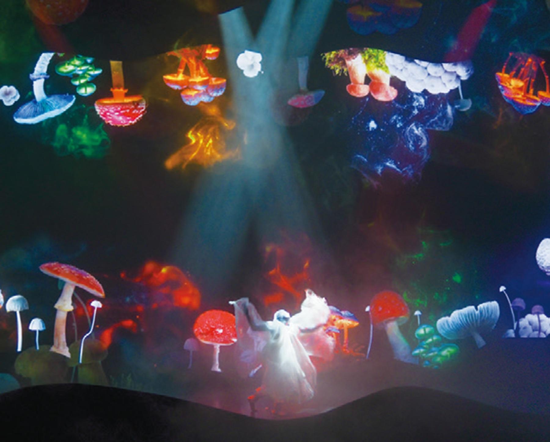 光・映像・音・空気に関する空間演出技術を駆使した、幻想的なイマーシブ空間が広がる。