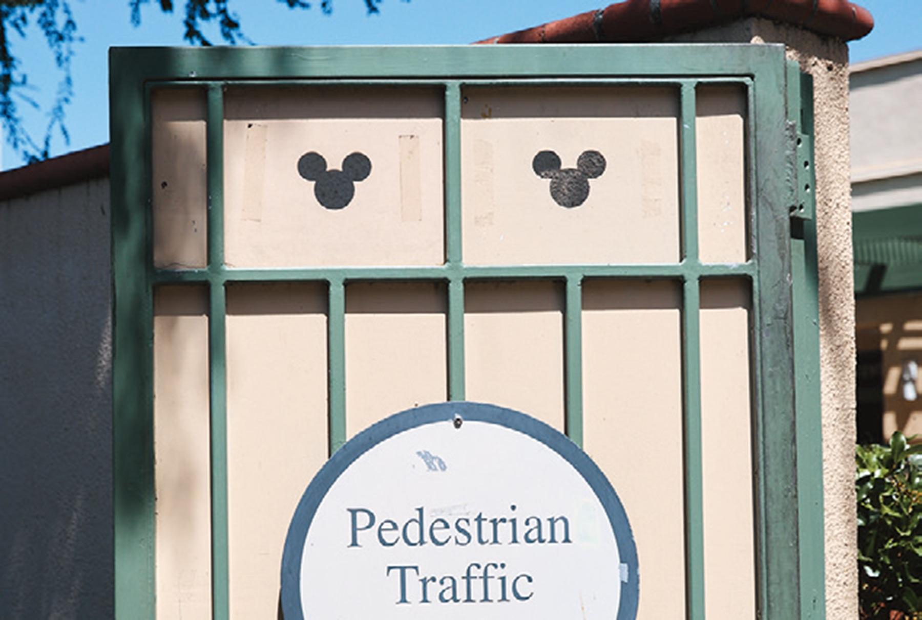 美しく刈り込まれたトピアリーにそれを囲う柵、自転車置き場にガソリンスタンド…。スタジオ内には、至る所に隠れミッキーが。従業員用の小さな看板など、ここにも!? という場所にも素敵なデザインで潜むミッキー。見つける度にキュンとしました!