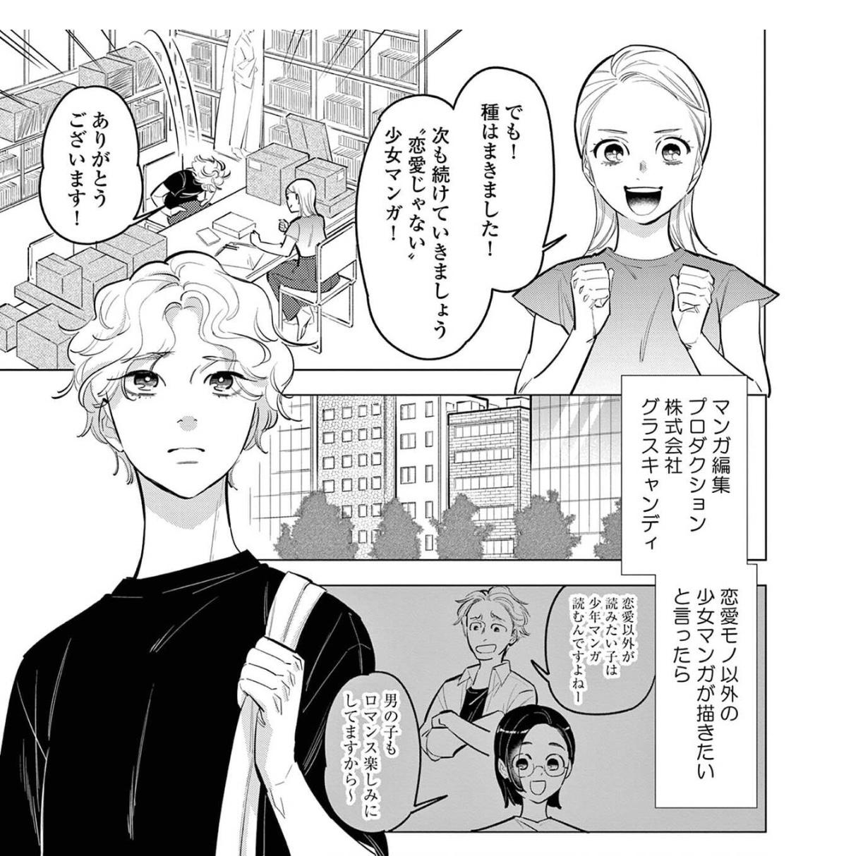 倉石が担当する新人マンガ家で、少女向けの雑誌で“恋愛以外のマンガ”を描きたいともがいている。女の子2人が冒険する物語を描いているものの、商業的には売れてはいない。自分が子供の頃、仲良しの男の子との間柄を勝手に“恋愛”と決めつけられた、などの体験から、恋愛やそれを取り巻くあれこれが苦手に。「女の子はこうじゃなきゃ」という価値観にあらがいたけれど、その表現方法が見つからず…。