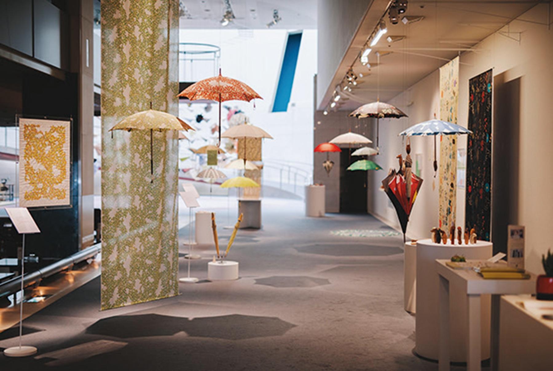 本展は、イイダさんが発表してきた傘のなかから300本以上を使ったインスタレーションを展開。テキスタイルデザインの過程など傘作りの裏側を紹介した展覧会だ。