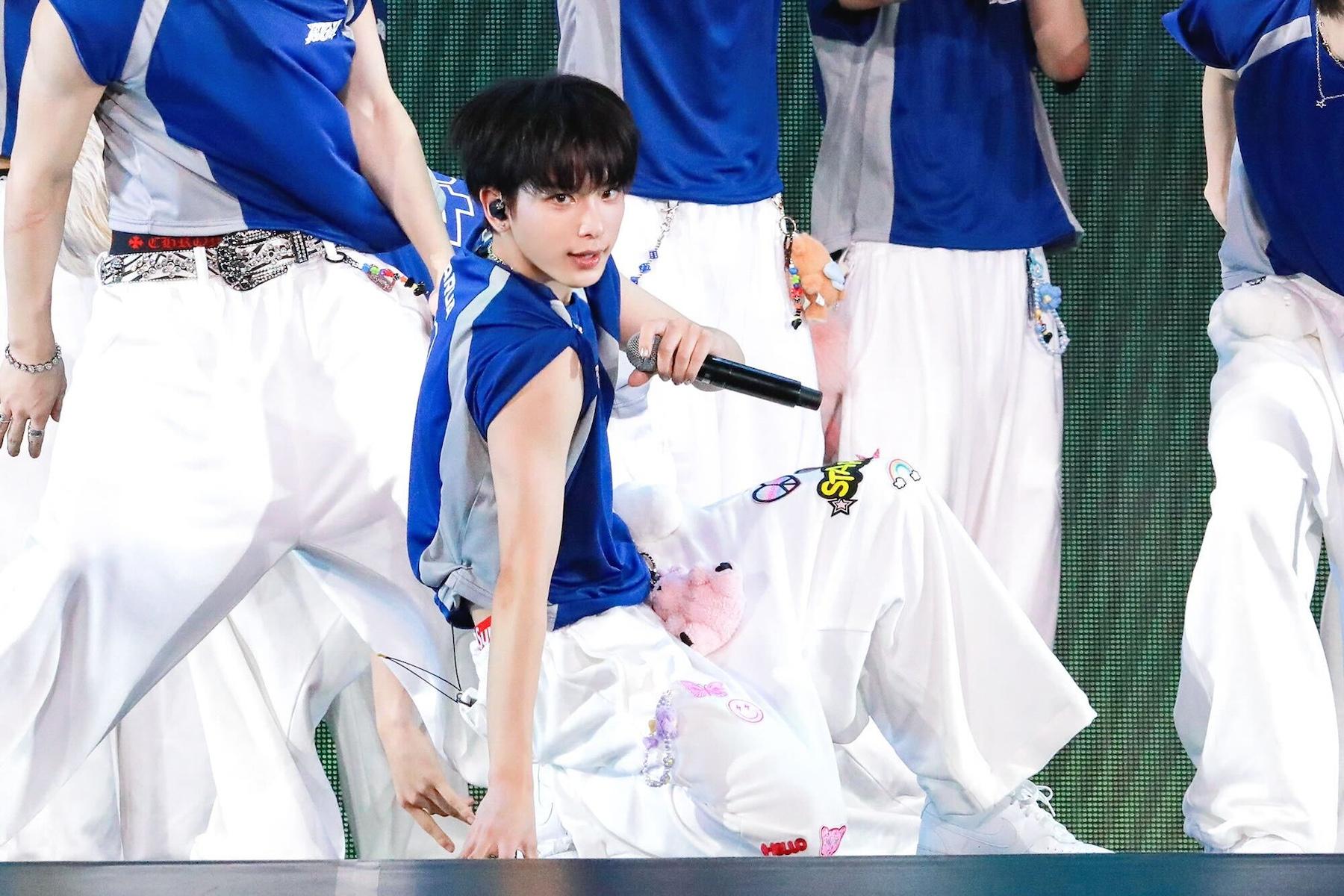 雰囲気は⼀転、会場全体がグリーンのレーザーに照らされ、「Like This」(MIMS)のヘヴィなヒップホップビートが鳴り響く中、キャップを⽬深にかぶったKとYUMA、そしてサングラスをかけたFUMAが登場し、ヒップホップダンスで会場を圧倒。そして舞台が暗転後、再び登場したのは、背中を露わにしたFUMA。その姿を⽬の当たりにした会場が、もはや悲鳴の⼤歓声を上げる中、⽩シャツに着替えたKとYUMAもステージ上のカメラに向かって⼆⼈称⽬線でセクシーにダンス。先ほどの歓声よりもさらに⼤きな悲鳴で爆発的に盛り上がると、ラストは3⼈ともシャツを脱ぎながらオフステージし、最後まで会場を熱狂させていった。