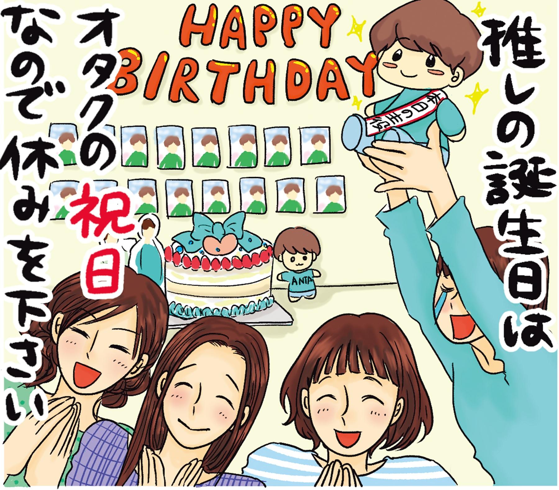 「祭壇を作り、推しをイメージしたオーダーケーキを食べるのが定番」(多田さん)。「推しと自分の誕生日のなか日で、真ん中バースデーパーティを開催しています(笑)。自宅に友達を招いて、グッズを並べて祭壇を作ったり、友達に推しのお面をかぶってもらったり。毎年恒例になりつつあるくらい楽しいです!」(ゆるりさん)