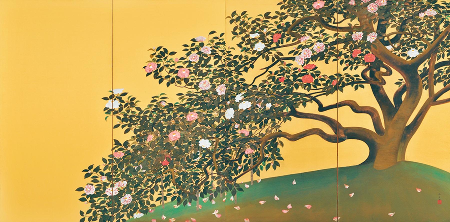 速水御舟《名樹散椿》【重要文化財】 1929(昭和4)年 紙本金地・彩色 山種美術館[京都府]