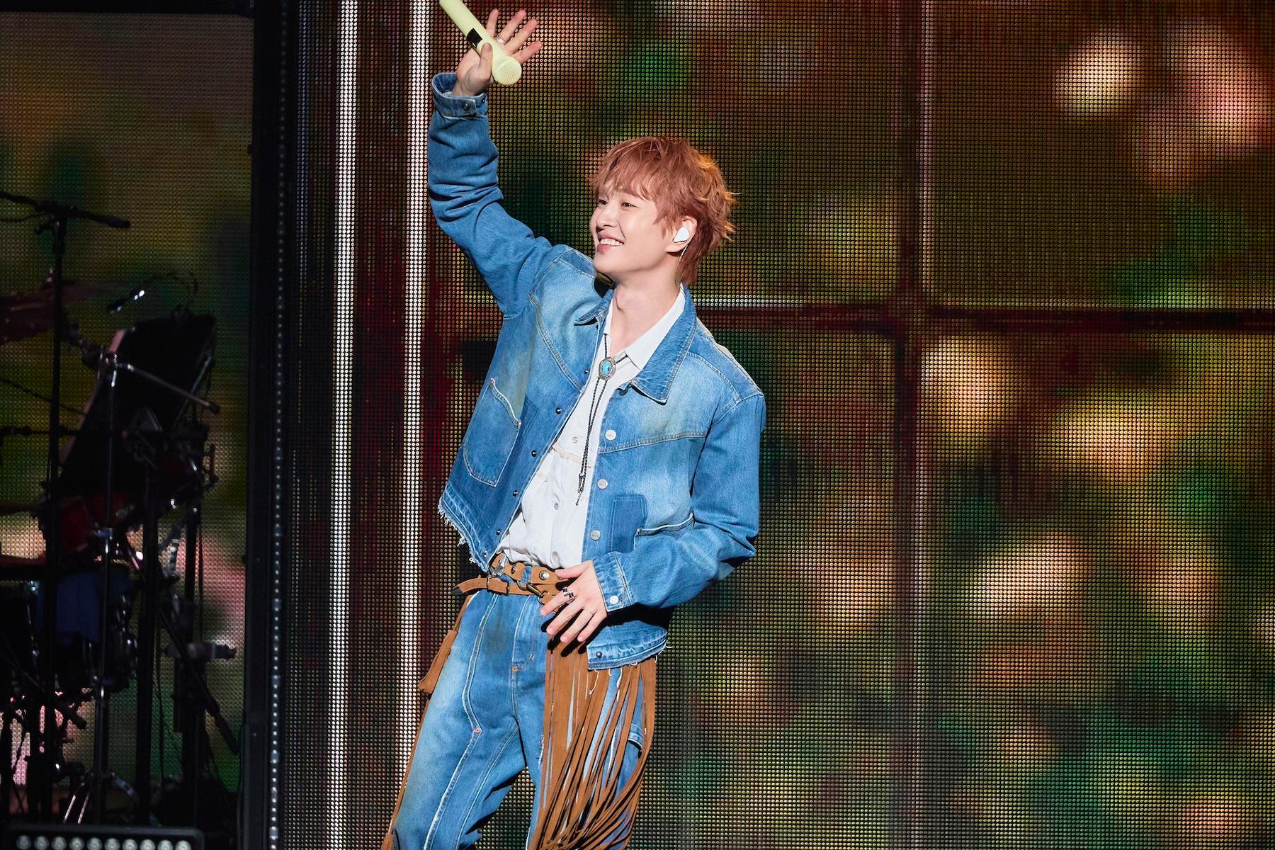 オレンジ⾊のライトに照らされたセンターステージに⼀⼈⽴つONEWが続けて届けたのは、「Epilogue」。韓国語で“僕のエピローグ”と歌うその歌声は、ここまでのどの歌声とも違ってあまりにも真っすぐだ。⾔語を超えたその先にある、⼈間誰しも感じたことのある普遍的な感情をやさしく撫でていくような響きを湛えるその歌声に聴き⼊る会場から再び⼤きく⻑い拍⼿が送られると、そよ⾵のようなイントロが鳴らされ、発売間もないJapan 2nd Mini Album『SAKU』からタイトル曲「花のように」を披露。MVの世界観を再現するようなボヘミアン調のセットの中、椅⼦にゆったり腰かけて登場すると、歌詞の細かな表現をジェスチャーに落とし込みながら丁寧に歌い、花びらが舞う会場に⼀⾜早くあたたかな春の⾵を届けたのだった。