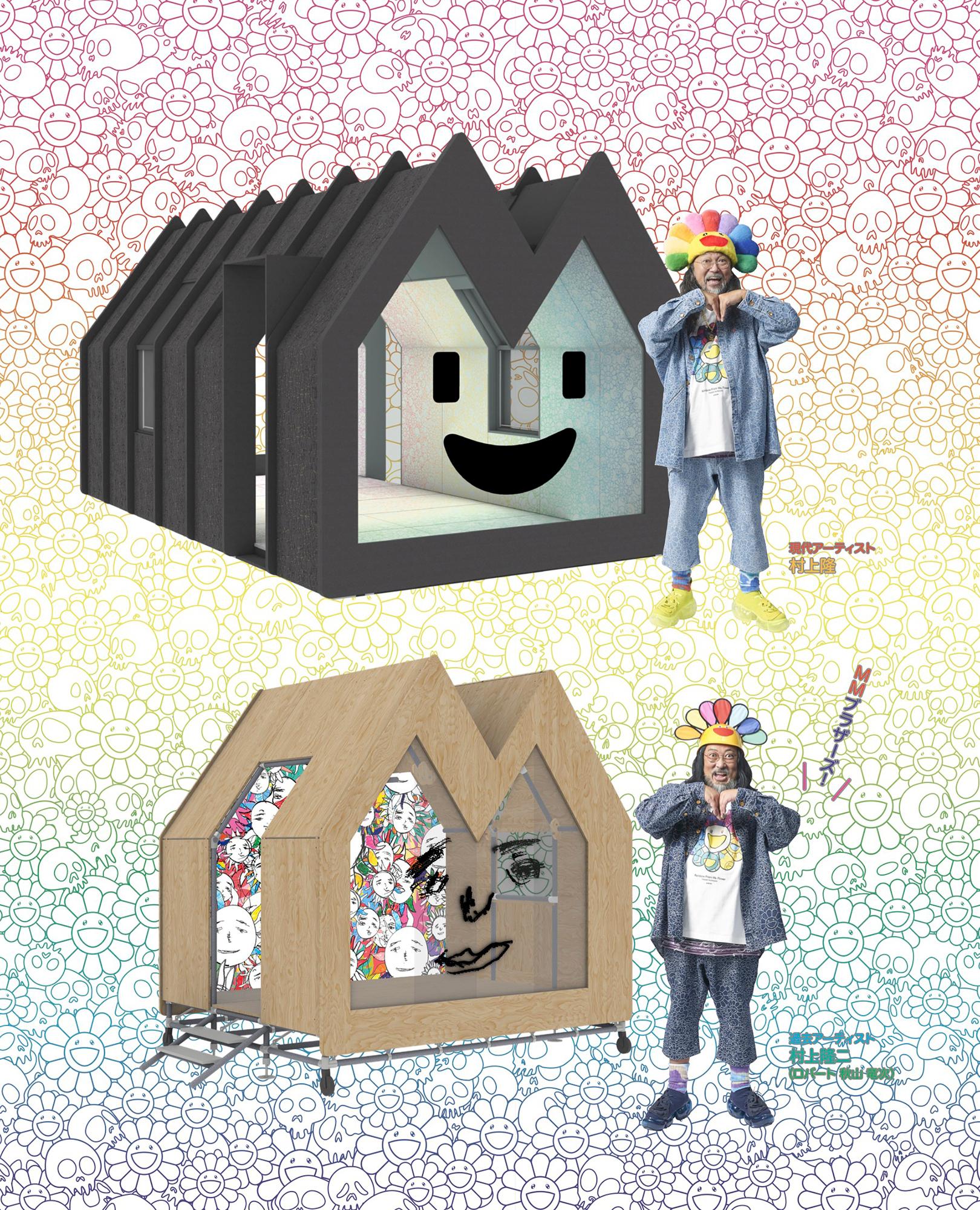 展示会場で見られるのは、「村上隆の家」「村上隆二の家」の2棟の〈村上ハウス〉と、村上隆のシグネチャー「お花」をポリゴン化した〈お花ハウス〉の3棟。こちら、なんと販売もされるという。