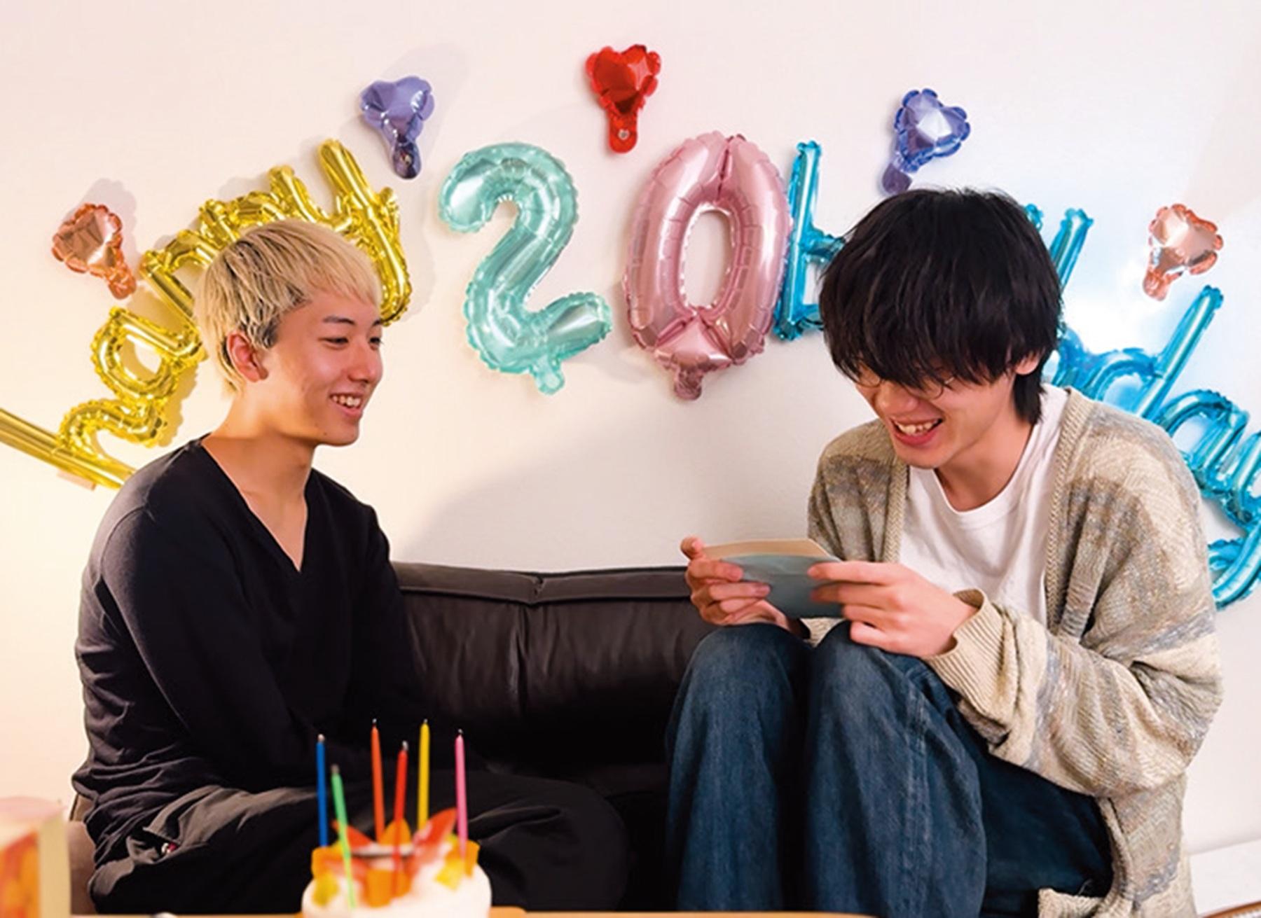 「お金はなかったけれど、ちゃんとお祝いしたくて。普段はしない飾り付けにも挑戦しました」(きょーた)。「活動が軌道に乗り始めて、一緒にケーキを食べられるところまで来られたことが本当に嬉しかったです」(みつき)