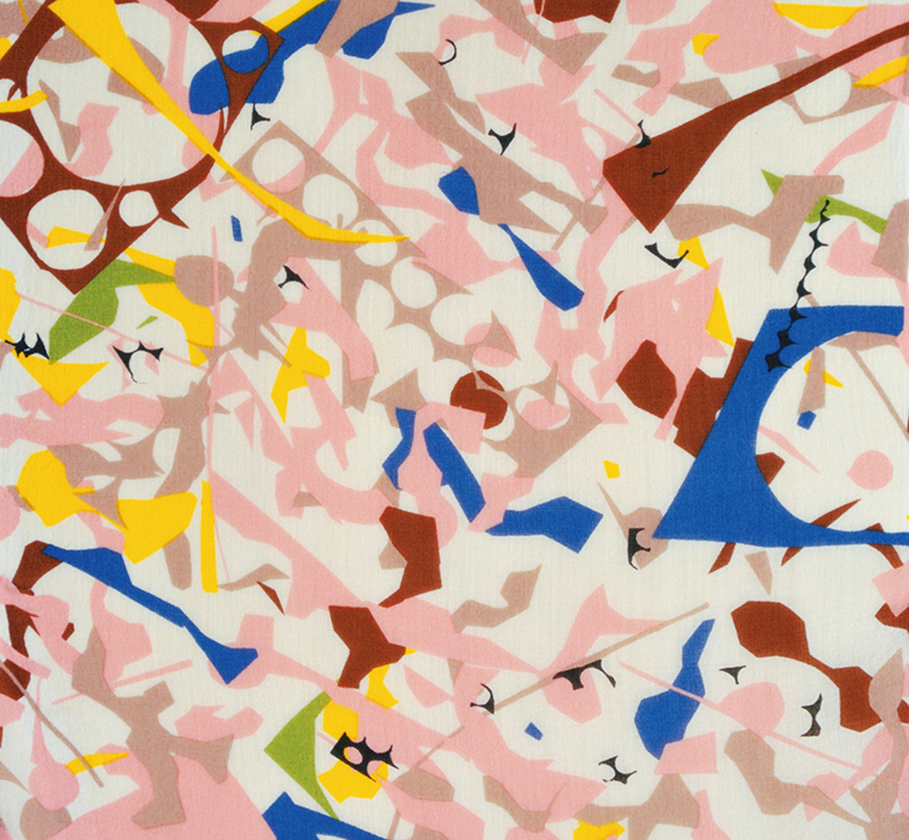 〈“surplus”2003-04→a/w〉切り絵の後に残った紙の切れ端をちりばめ生まれた図案をプリントしたテキスタイル。