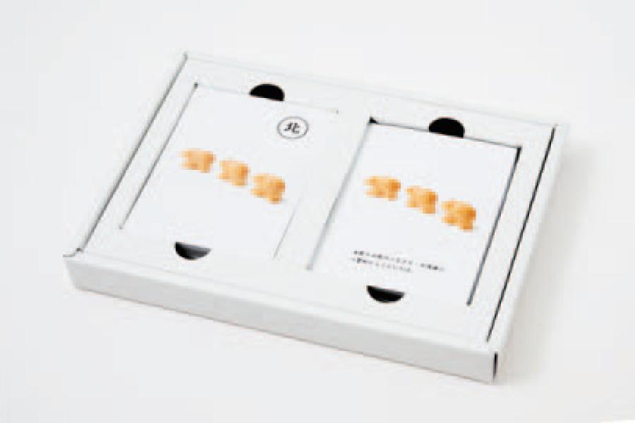 白い箱に白いカードが、なんだかとっても恭しい…。こころなしか、もなかたちもなんだか嬉しそうに見えるから不思議。