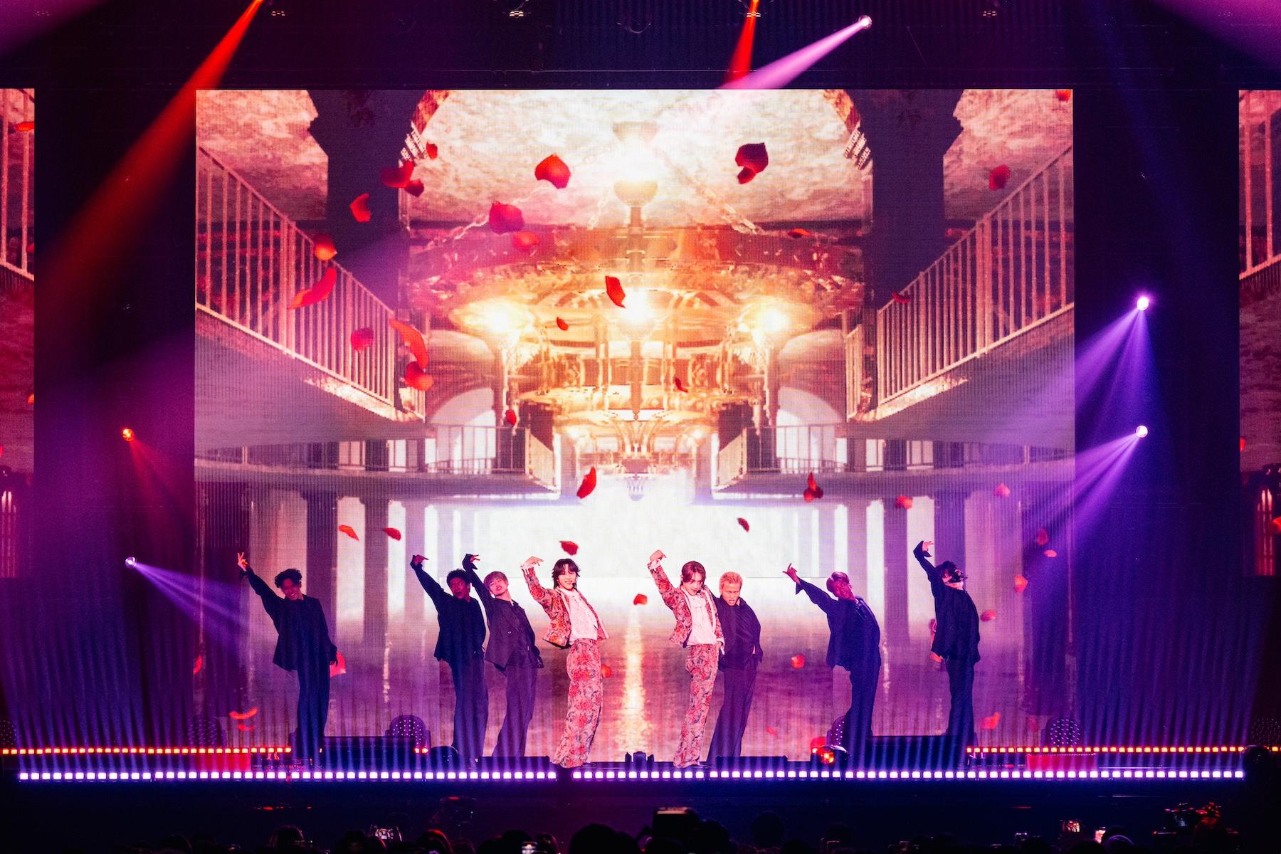 そして中盤、情熱的なラテンナンバー「Justice」を披露。⾚のナポレオンジャケットに⿊いパンツ⾐裳に着替えた⼆⼈が熱い眼差しで⾊っぽくパフォーマンスを披露し、会場を沸かせた。
