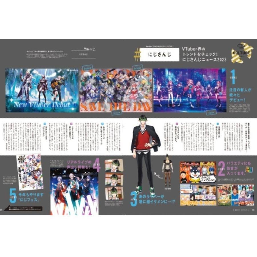 全面的なコラボが注目を集めた「トレンド大賞」特集。バラエティ『木10!ろふまお塾』も話題のユニット・ROF-MAOの撮り下ろし写真は、ビリビリ椅子に座っている点も話題に。本当のお嬢様に憧れる一般女性ライバー・壱百満天原サロメさんは、普段のトレンドキャッチ方法などを教えてくれた。さらにコラムページ「にじさんじニュース2023」も!