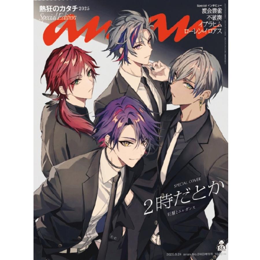 「にじさんじ」ライバーで結成された4人組バンド・2時だとか。心を熱くするエンタメに迫る「熱狂のカタチ2025」の表紙に、クールな黒スーツ姿で登場! “熱狂”をテーマにした一問一答に加え、「もし『2時だとか』が〇〇だったら?」という想像を繰り広げる空想座談会では、意外な一面やメンバー間の関係性も垣間見えた。
