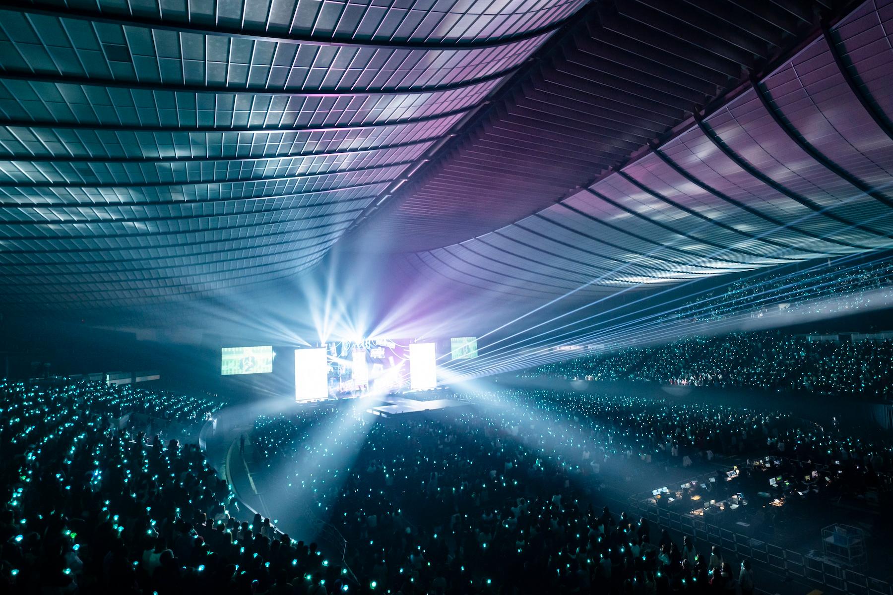 「みなさん、今⽇、喉元気ですね」とここまでの会場の盛り上がりに驚きを隠せないKEY。2回⽬のMCでは、先ほどよりもさらにフランクに、⽇本のコンビニ商品について客席と会話のキャッチボール。そんな中、今⽉からスタートする北⽶ツアーに触れながら、「こんなに活動してきても、まだまだやったことのないことが残っていることがすごく嬉しい」と、グループとしてデビューしてから17年以上のキャリアを積み上げてもなお、新たなチャレンジへ貪欲かつ素直に向き合うそのスタンスに、彼の表現に対する誠実さがうかがえる。
