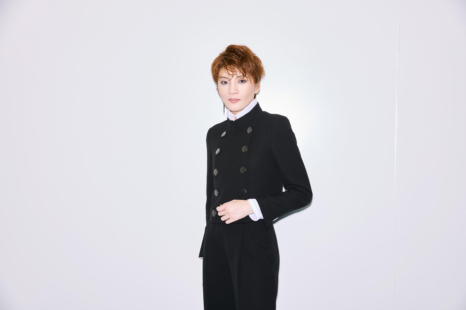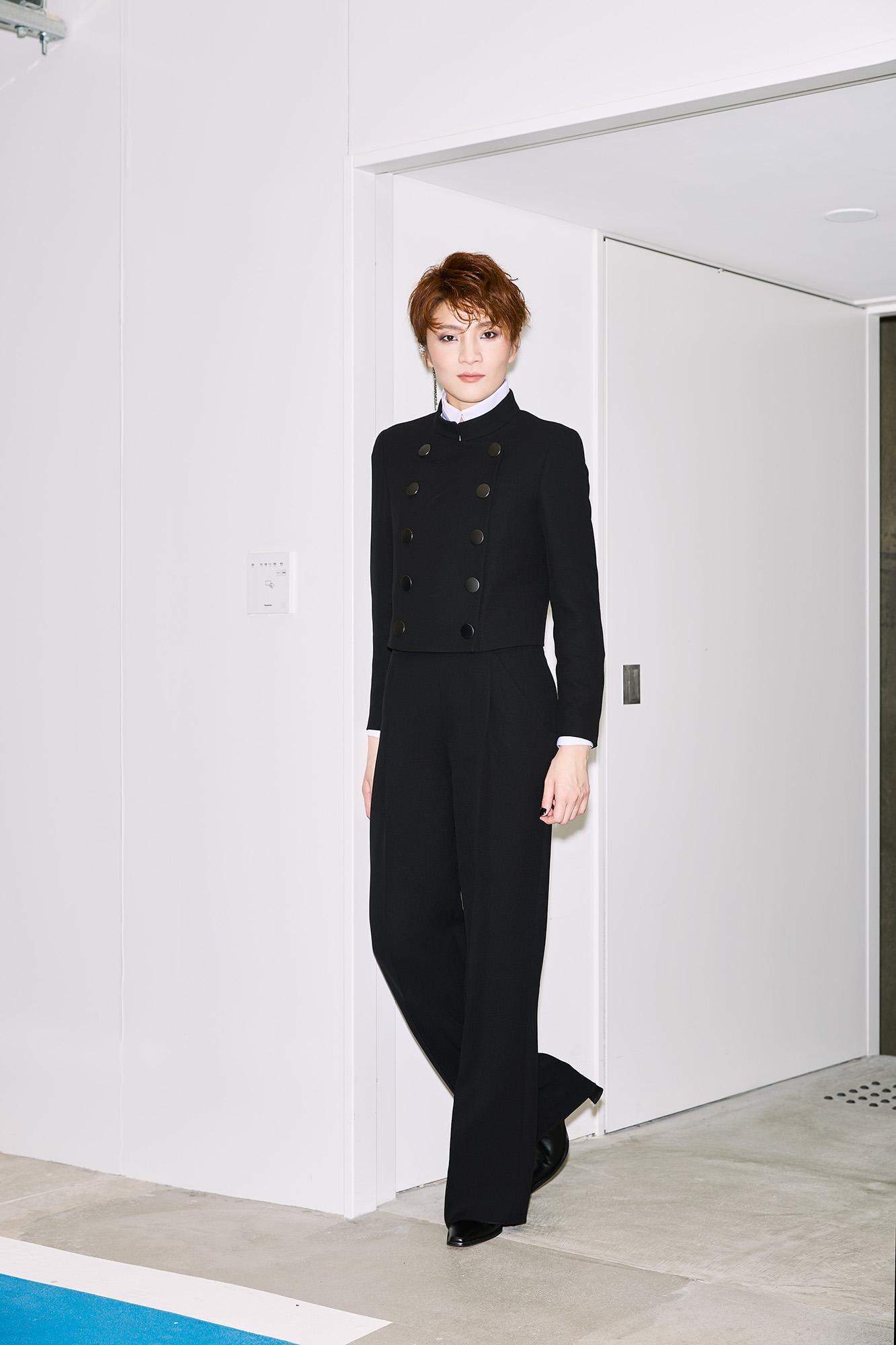 (鳳月さん)ジャケット¥814,000 シャツ¥418,000 パンツ¥396,000(以上ジョルジオ アルマーニ/ジョルジオ アルマーニ ジャパン☎03・6274・7070) イヤーカフ¥88,000(スワロフスキー・ジュエリー/スワロフスキー・ジャパン☎0120・10・8700) ブーツはスタイリスト私物