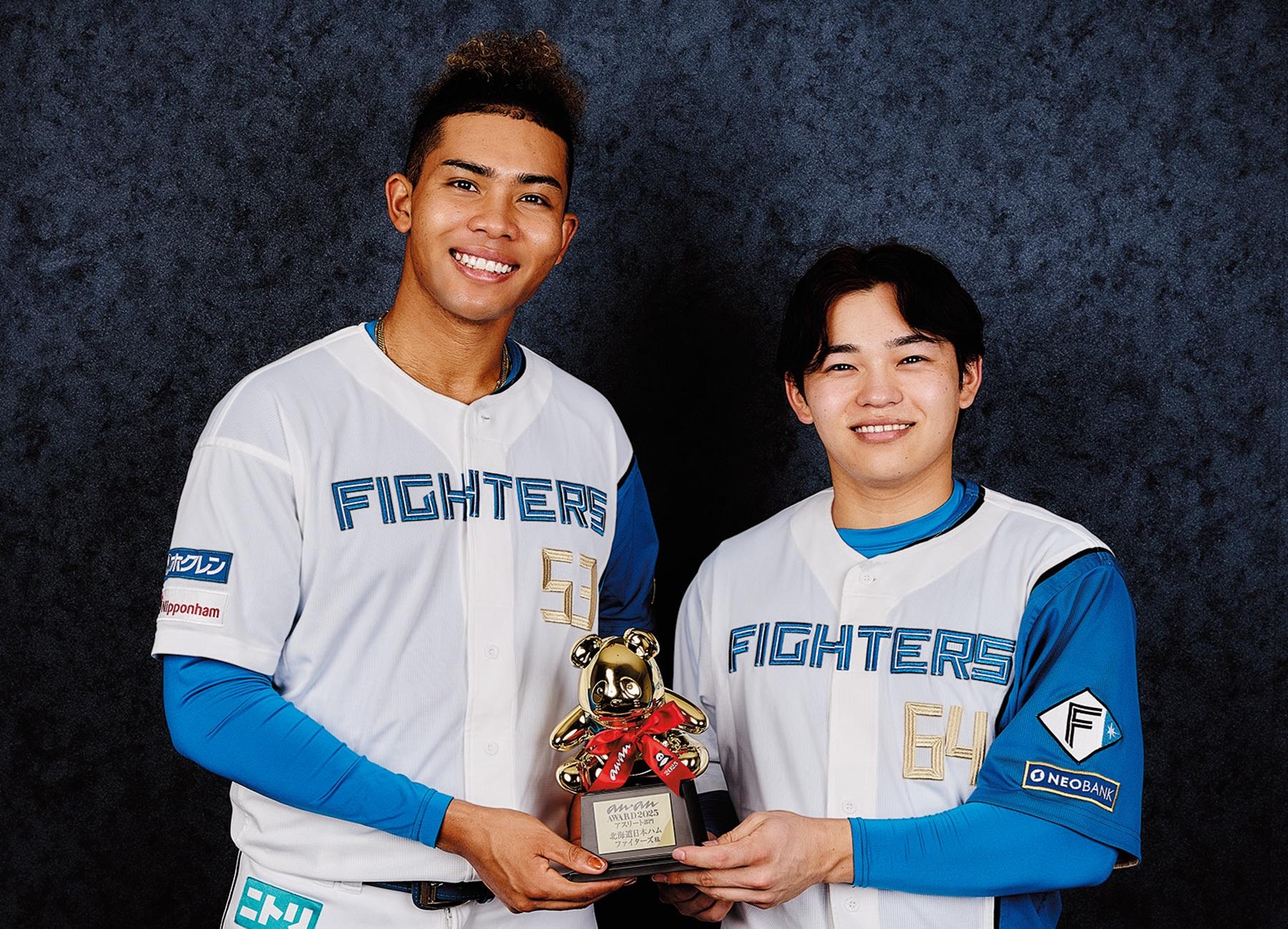 左から、北海道日本ハムファイターズの水谷瞬選手、田宮裕涼選手