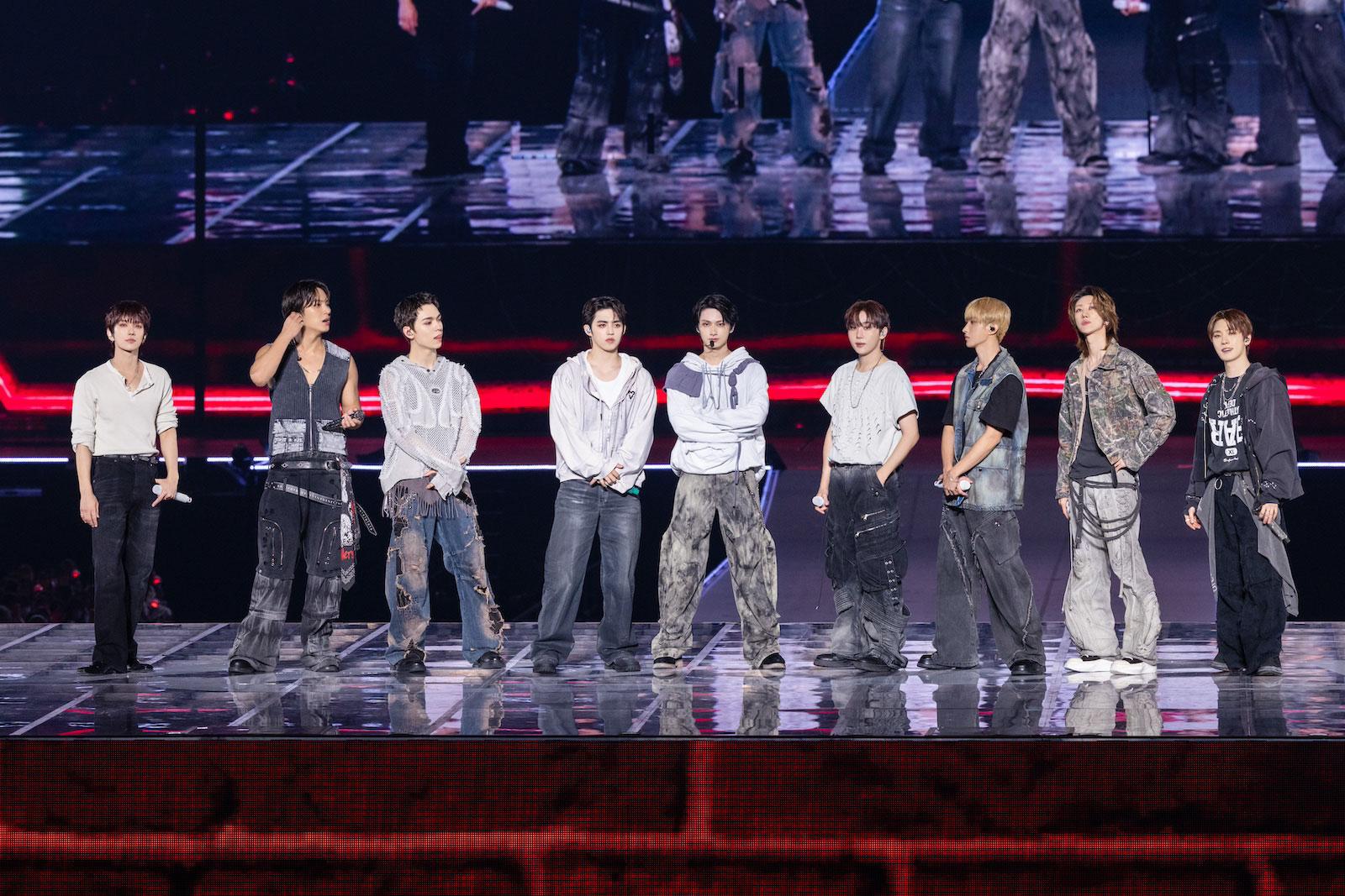 最後の「Rock with you -Japanese ver.-」ではメインステージにドラムセットが登場すると、DKがドラムを叩くスペシャルバージョンで曲がスタート。疾⾛感あふれる楽曲に合わせて掛け声で盛り上がり、そのリズムに合わせて花⽕が上がるというラストにふさわしい盛り上がりでコンサート本編は終了。
