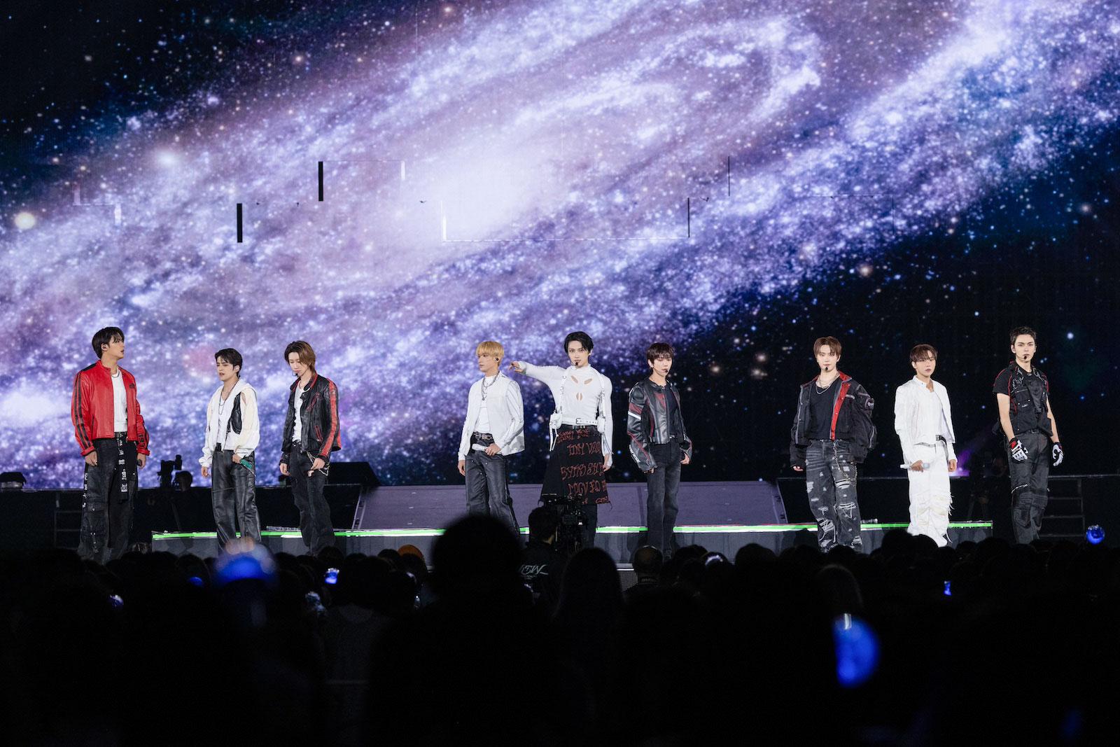 MINGYUは⿊いエナメルのロングコートにサングラス姿でステージに登場すると、「Shake It Off」でドームを巨⼤なクラブハウスに変えて会場を盛り上げ、続くS.COUPS(エスクプス)は「Jungle」でプリミティブなリズムを刻みながら、ワイルドで気迫のこもったパフォーマンスで会場を圧倒した。
