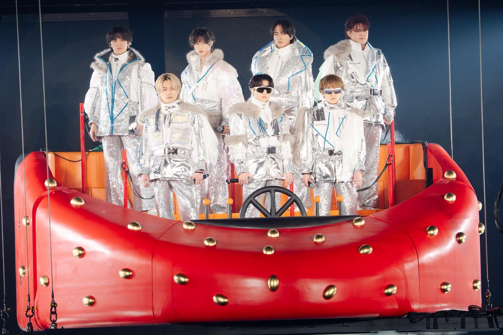 12⽉3⽇にリリースした3枚⽬のアルバム『's travelers』を引っ提げ、全国8か所30公演のアリーナツアー「Travis Japan Concert Tour 2026 's travelers」を開催中のTravis Japan。今回は〈タイムマシンに乗って時空を旅〉がテーマのSF感あふれるステージ。初⽇を迎えた1⽉4⽇(⽇)横浜アリーナ公演をレポートします。
