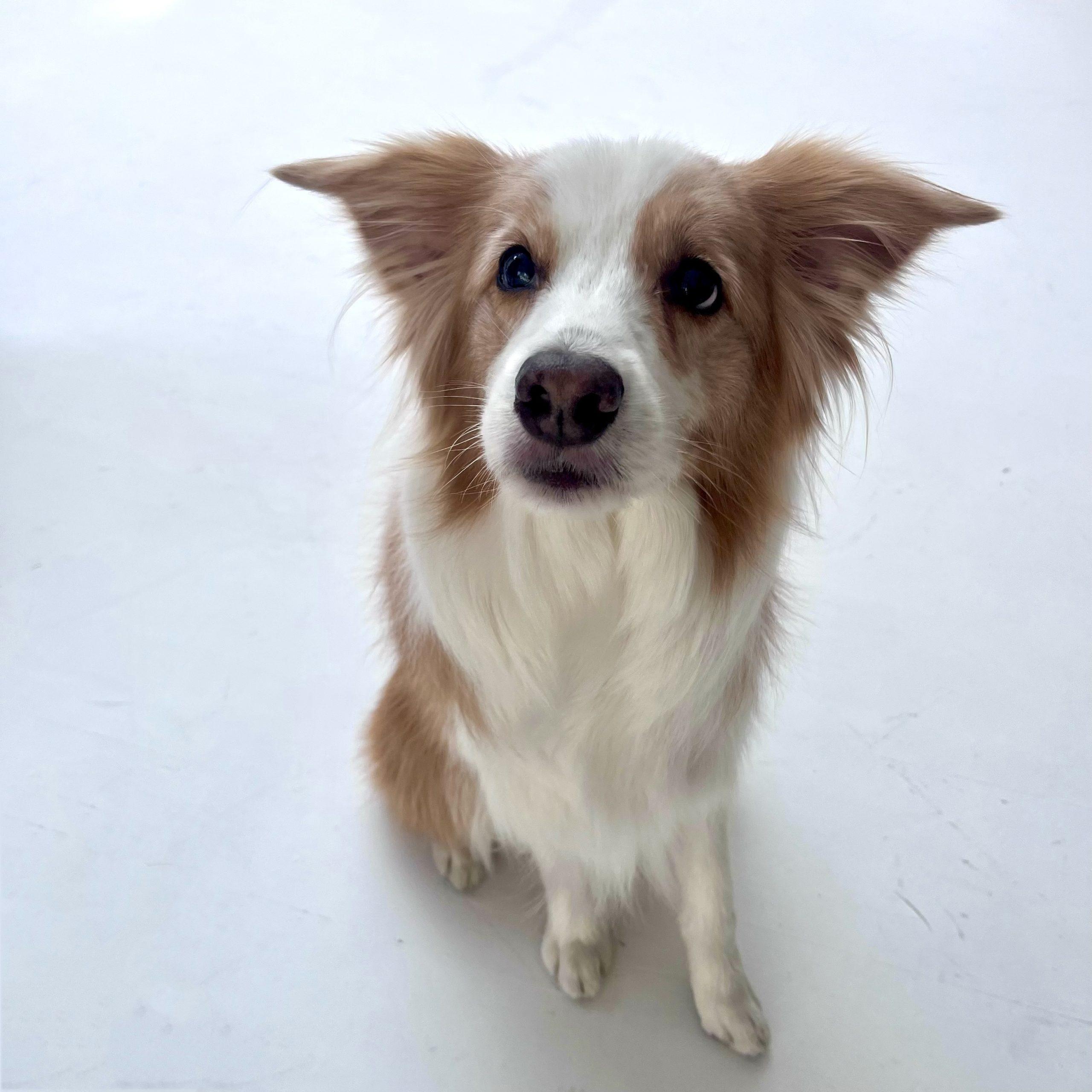 人間が大好きなはなちゃんは、スタジオに入るとしっぽを大きく振り、楽しげな様子。最初は正門さんの姿を見つけてもスルーし、スタジオ内をダッシュで駆け巡るほどの天真爛漫さを発揮していました。その後、正門さんがおやつを片手に「はな、おやつだよ〜」と優しく呼びかけると少し落ち着きを取り戻し、仲良く撮影タイム。でもはなちゃん、距離が近づいたと思ったらふいっと急にどこかへ行ってしまう気分屋っぷり(笑)。そんなはなちゃんにもめげず、ニコニコした様子で優しく名前を呼びながら、1枚1枚一生懸命シャッターを切る正門さんの様子が印象的でした。