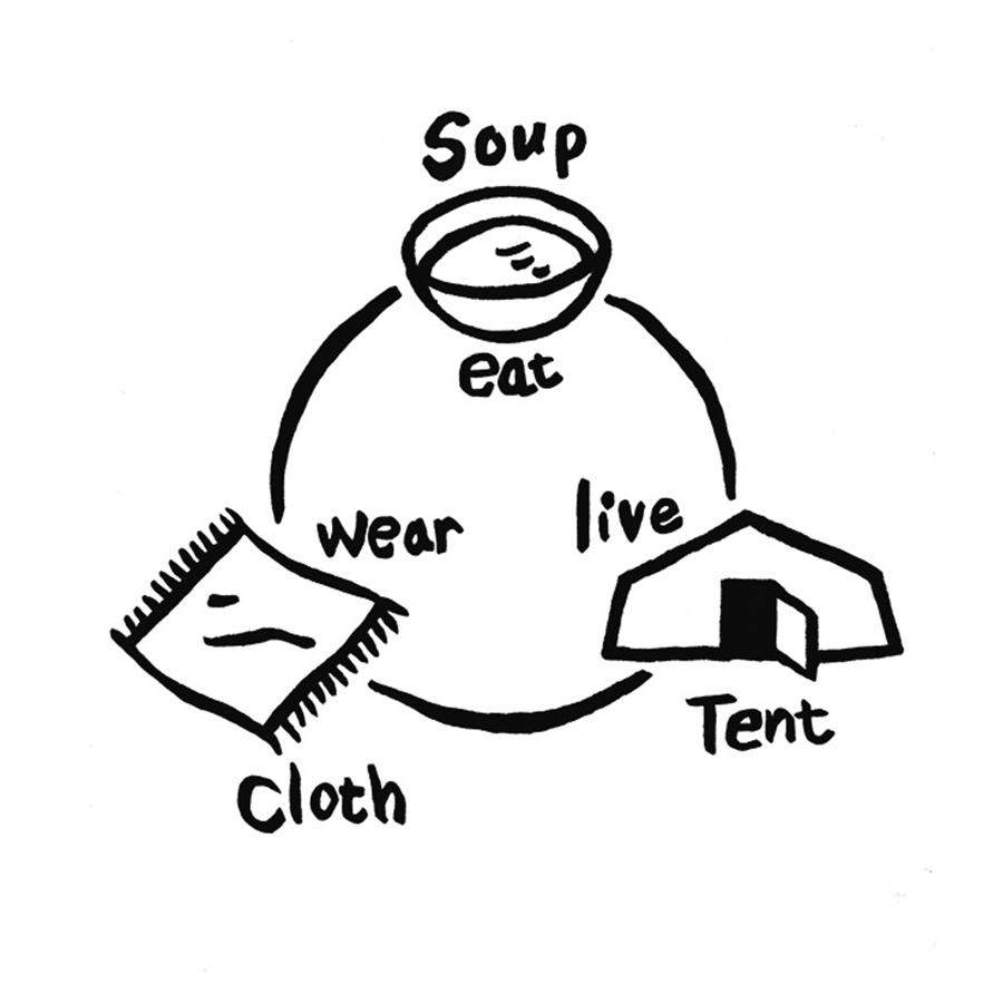 日々の食卓に登場するスープ。食の原点ともいうべきこのシンプルな料理を通して、現代人が忘れがちな、生きるために必要な原始的な感覚を見つめ直したのが本展だ。