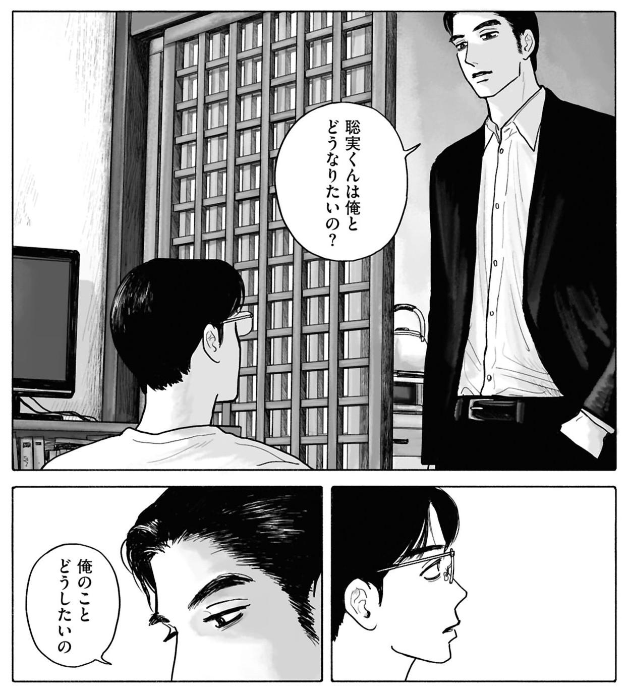 「狂児が聡実のアパートにお邪魔するシーンですね。狂児が聡実の部屋に立ち入るなんてことは絶対にないと思っていましたが、だからこそ新鮮で楽しかったです。読み返したときに、聡実に向かって〈俺とどうなりたいの?〉と聞く狂児に『……急に怖っ』と笑ってしまいました」