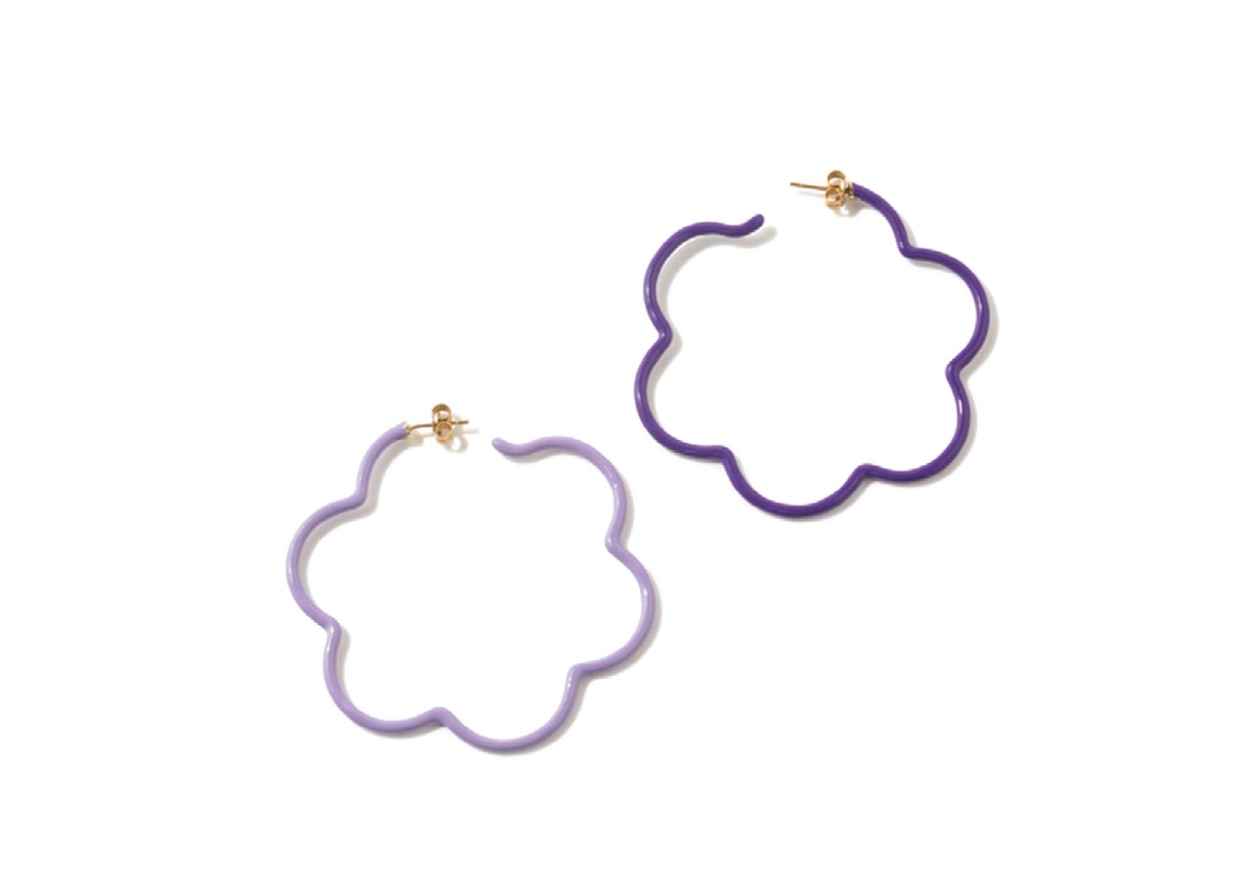 花の形のシルバーに、カラフルなエナメル塗装を施したピアス。左右で色調が異なるのもユニーク。