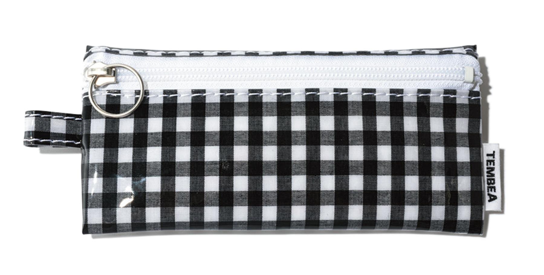 水辺でも気兼ねなく使えるPVC素材。ジップにリングが付いているので開閉もスムーズ。ペンケースや歯ブラシポーチとしても活用したい。