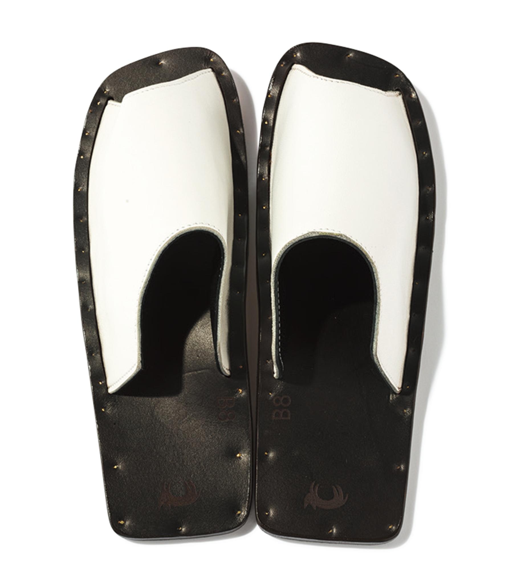 NYの工房で丁寧に手作りされるレザーサンダルは、直線的なシルエットがモダン。ソールの凹凸が足にフィットし、履き心地も申し分なし。