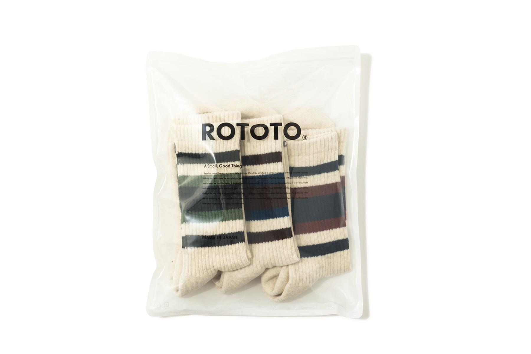凹凸のある表情が特徴的なコットンのムラ糸を使ったリブソックスは、秋色カラーのラインがポイント。さらりとした履き心地でオールシーズン重宝しそう。