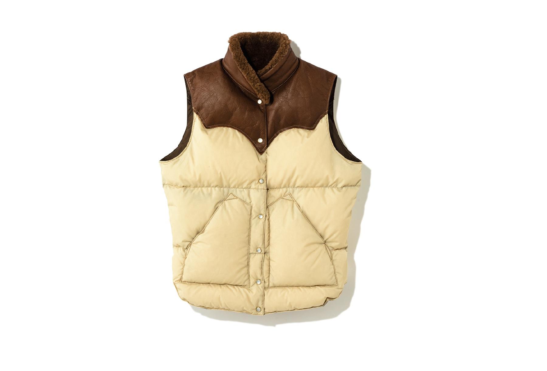 1960年代後半に誕生したアメリカのブランドのダウンベスト。襟部分はムートン素材で首回りもあたたかい。
