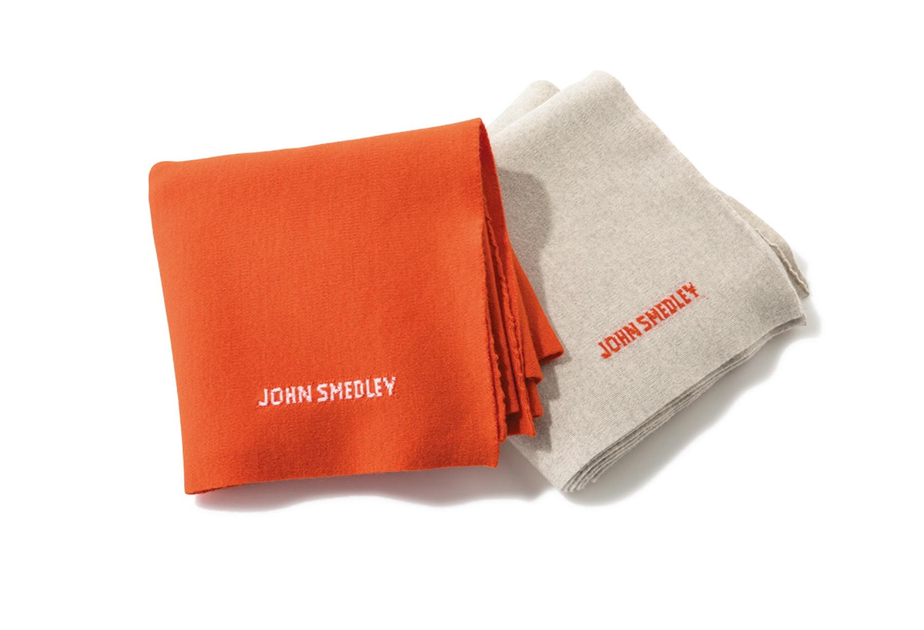 新店『JOHN SMEDLEY 高輪』のオープン記念に、24ゲージニットマフラーの限定カラーを発売。インターシャロゴが程よいアクセントに。