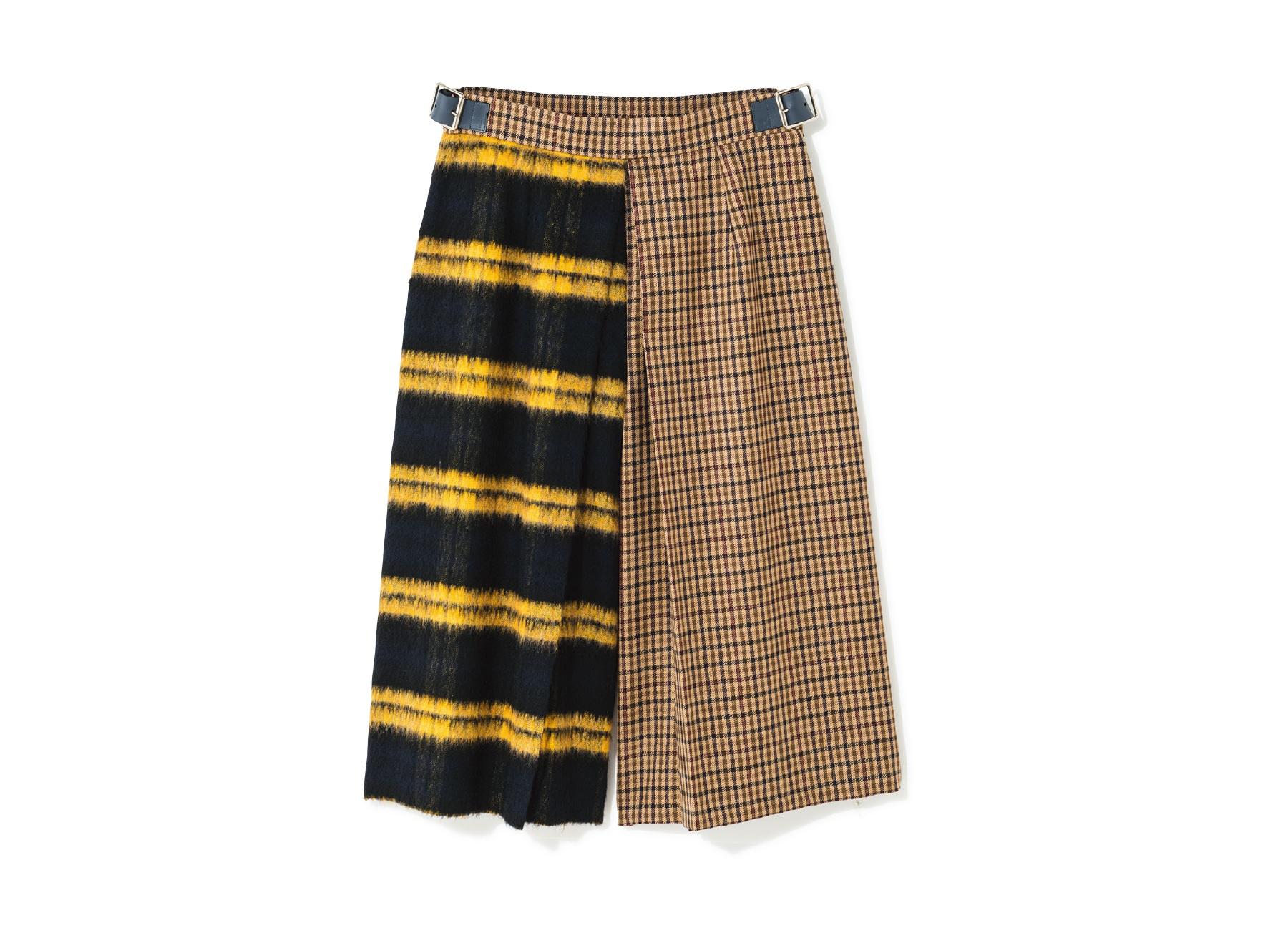 『オニール オブ ダブリン』らしいキルトのディテールはそのままに、よりカジュアルにはけるガウチョパンツにアレンジ。大胆なチェックのパターンミックスもポイント。