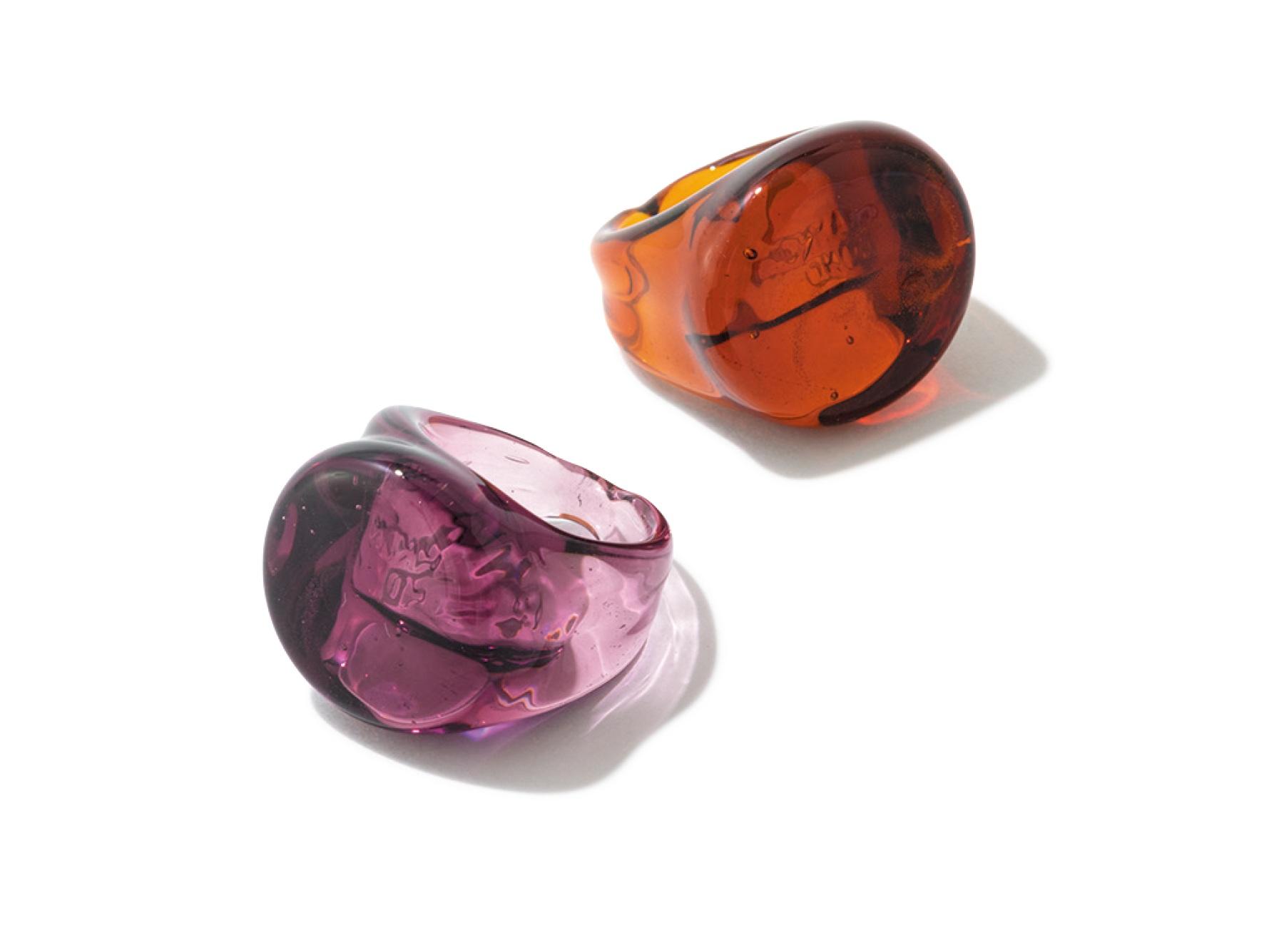 ポルトガル発のジュエリーブランドが手がけるリングは、イタリアでハンドメイドされたもの。独特の透け感はガラス製ならではの魅力。