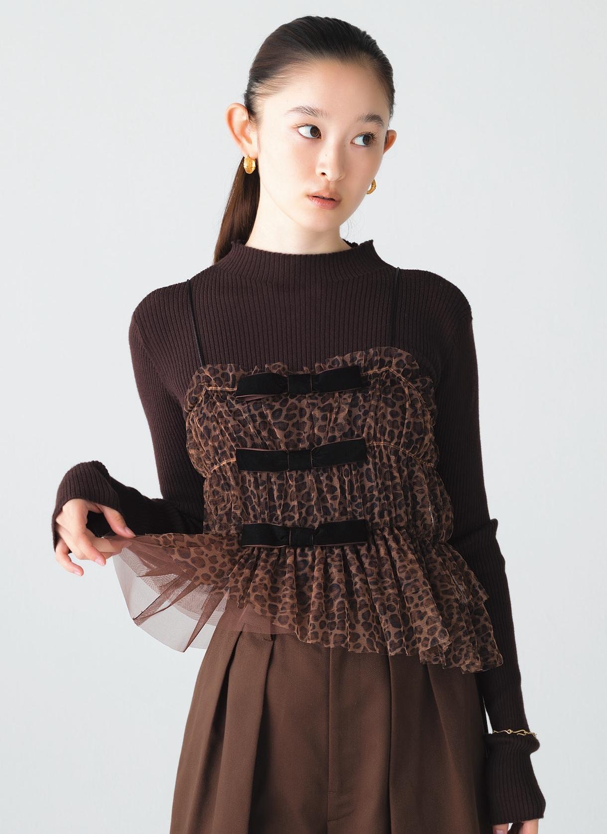 トップス(ビスチェとニットのセット)¥14,960(リリー ブラウン/リリー ブラウン ルミネエスト新宿店 TEL. 03-6457-8555) パンツ¥27,500(グリフ/スピック アンド スパン ルミネ有楽町店 TEL. 03-5222-1744) ピアス¥35,200 ブレスレット¥33,000(共にオクチジュエリー/フラッパーズ TEL. 03-5456-6866)
