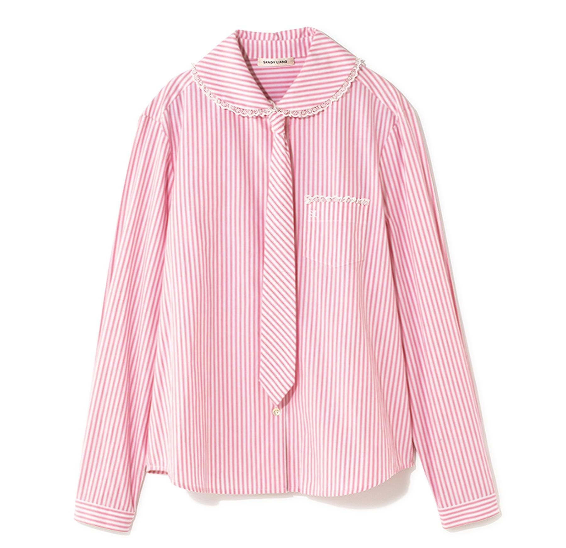 ガーリーなテイストを得意とするNY発ブランド『サンディ・リアング』のタイ付きシャツ。どこか懐かしさを感じさせるピンクストライプやコットンレースが愛らしさ満点。¥70,000(リディア TEL. 03-3797-3200)