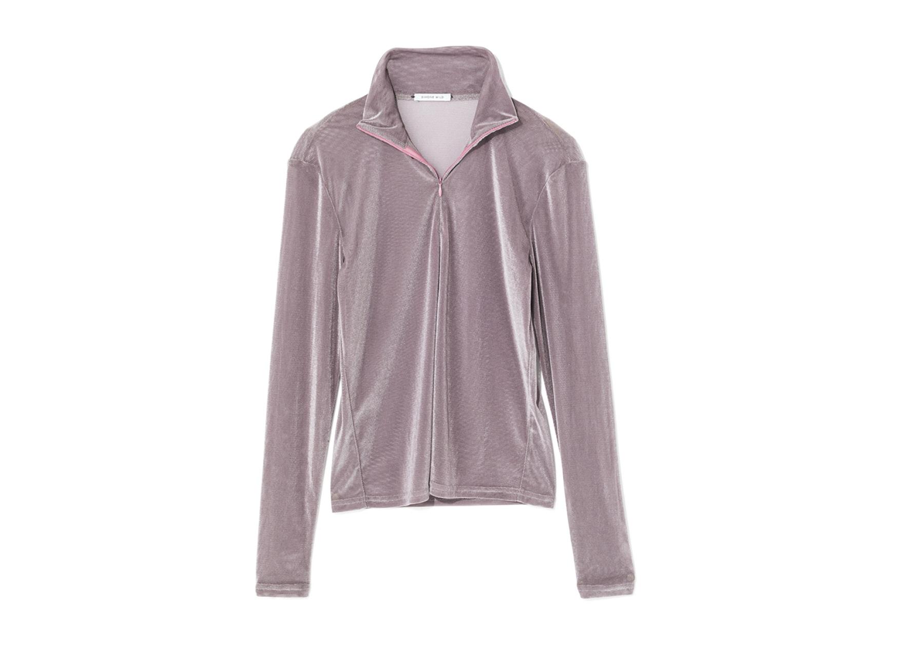 光沢やシアー感、どこかスポーティな雰囲気が気になるハーフジップトップス。ビスチェに重ねたり、ジャケットを羽織るなど、着こなし方は無限。¥38,500(シモーネ ワイルド/フィルグショールーム TEL. 03-5357-8771)
